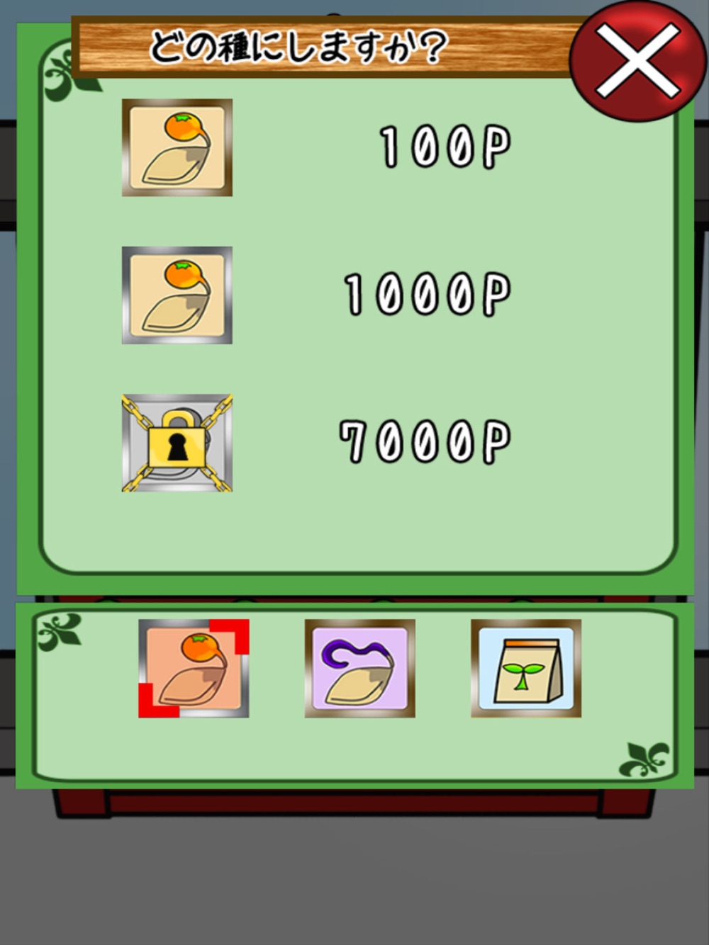 プランターをタッチ、その後種の2つを選んで植えよう。