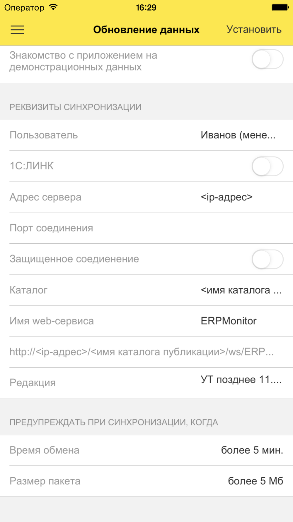 Внимание! Для работы приложения требуется коробочное решение "1С:Управление торговлей 8" редакции не ниже 11.1 или "1С:ERP Управление предприятием 2.0" и соединение с Интернет. Для первой синхронизации рекомендуется WiFi соединение.