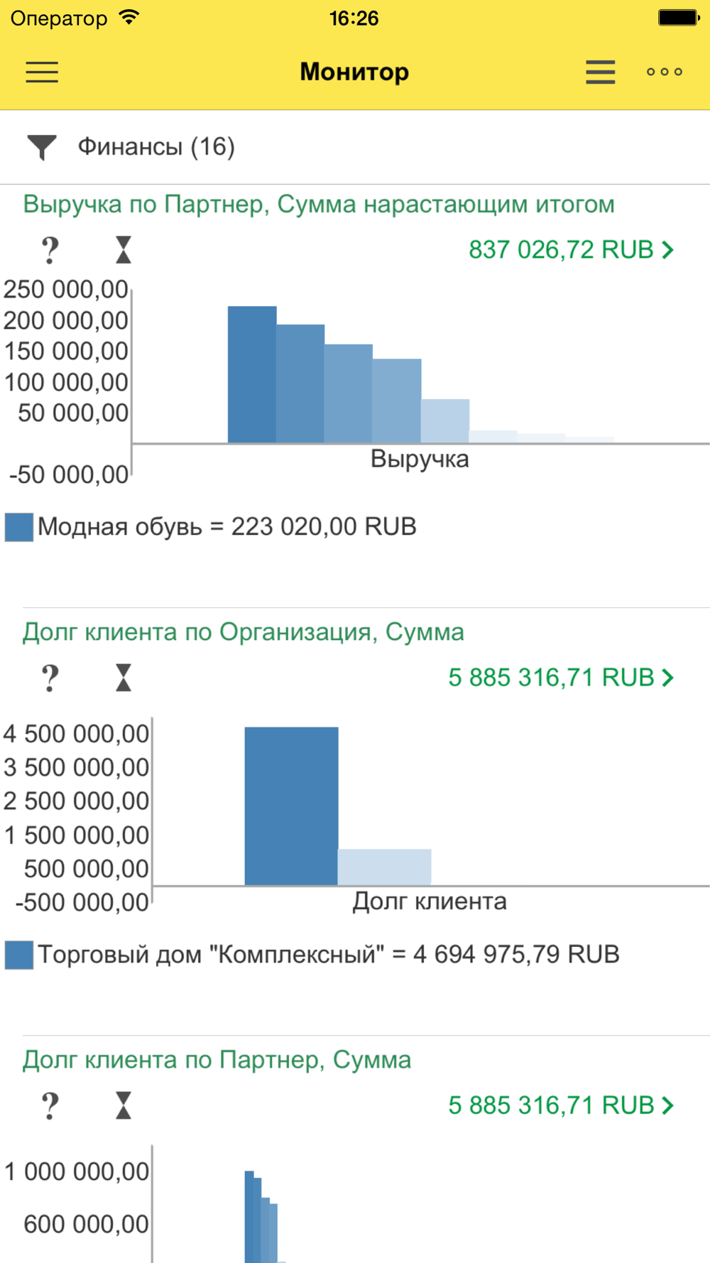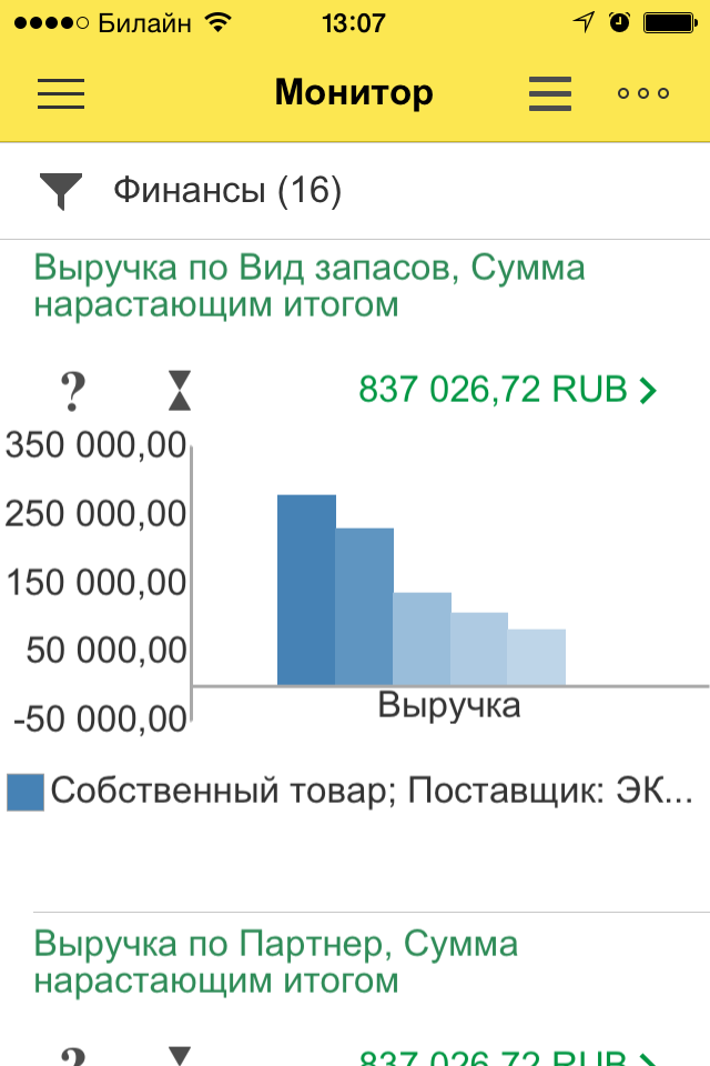 "1С:Монитор ERP" - это приложение, реализованное на мобильной версии платформы 1С:Предприятие 8.