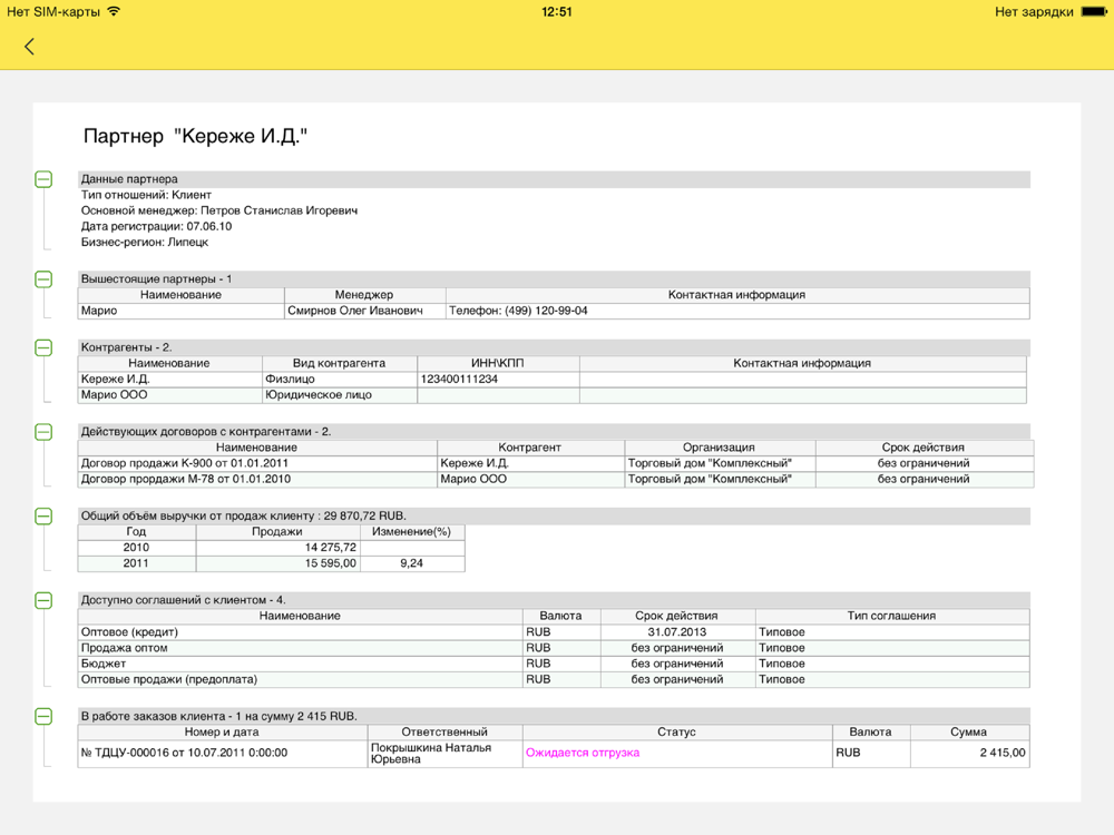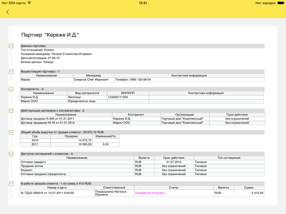 - управлять контактной информацией партнеров, их досье, а также совершать им звонки;