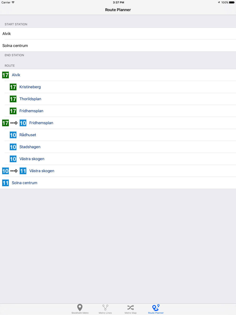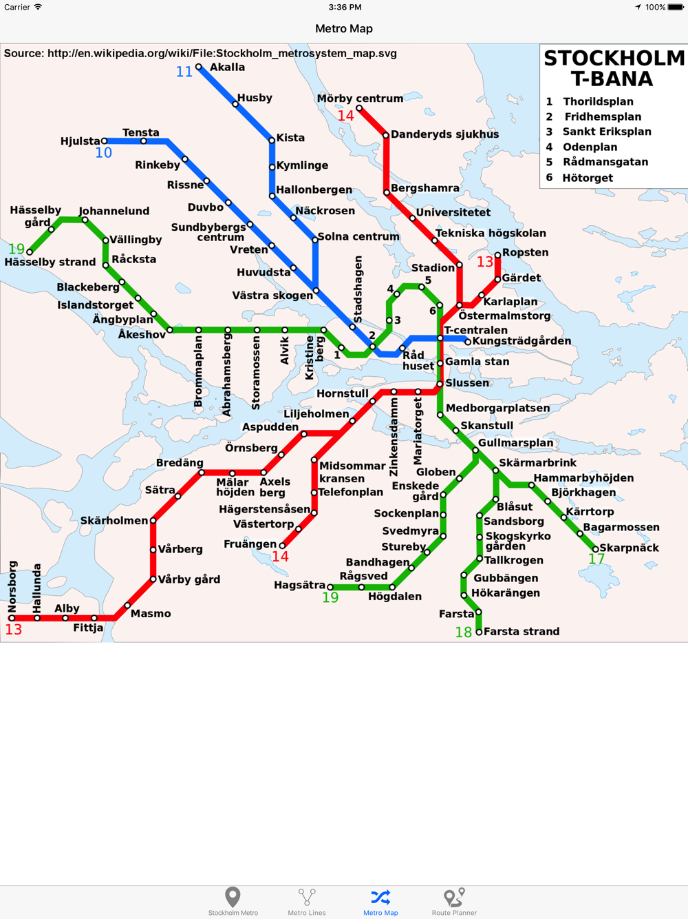 Это программа предназначена для тех, кто в Стокгольм хочет пользоваться Метро в качестве транспортного средства. С помощью программы легко найти ближайшую станцию Метро. Программа определит расстояние до ближайших станций Метро по отношению к точке нахождения и покажет их вам на карте и в виде списка.