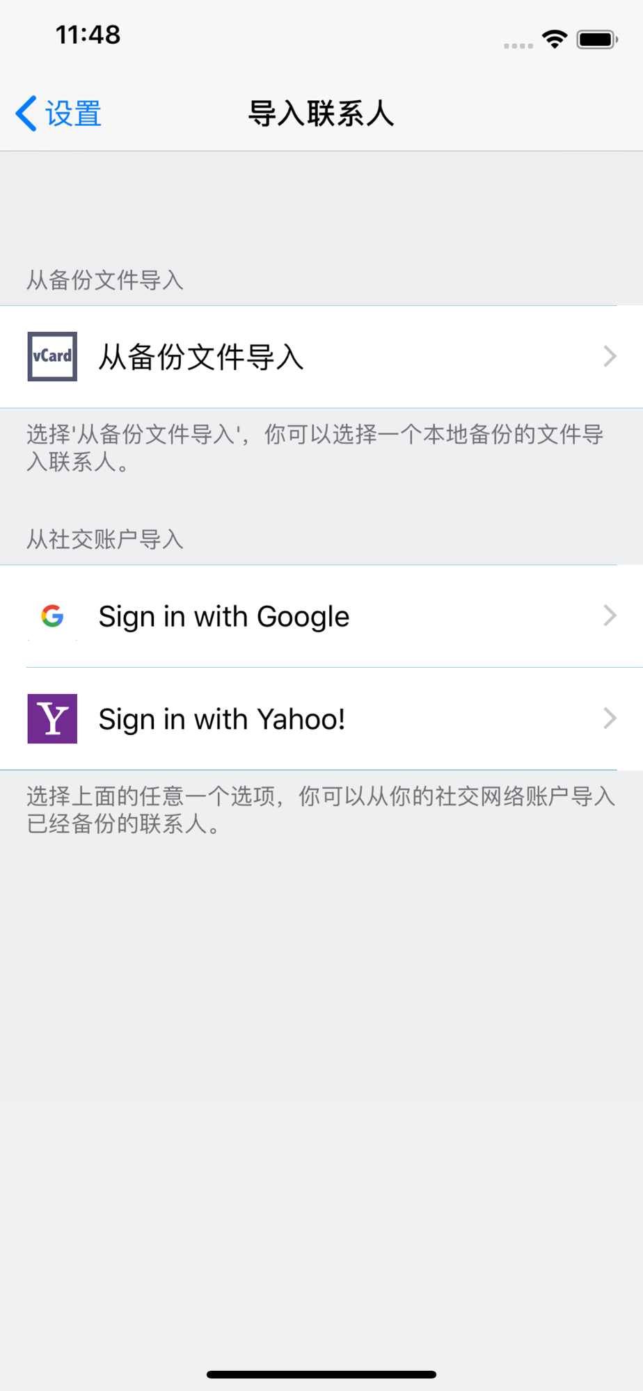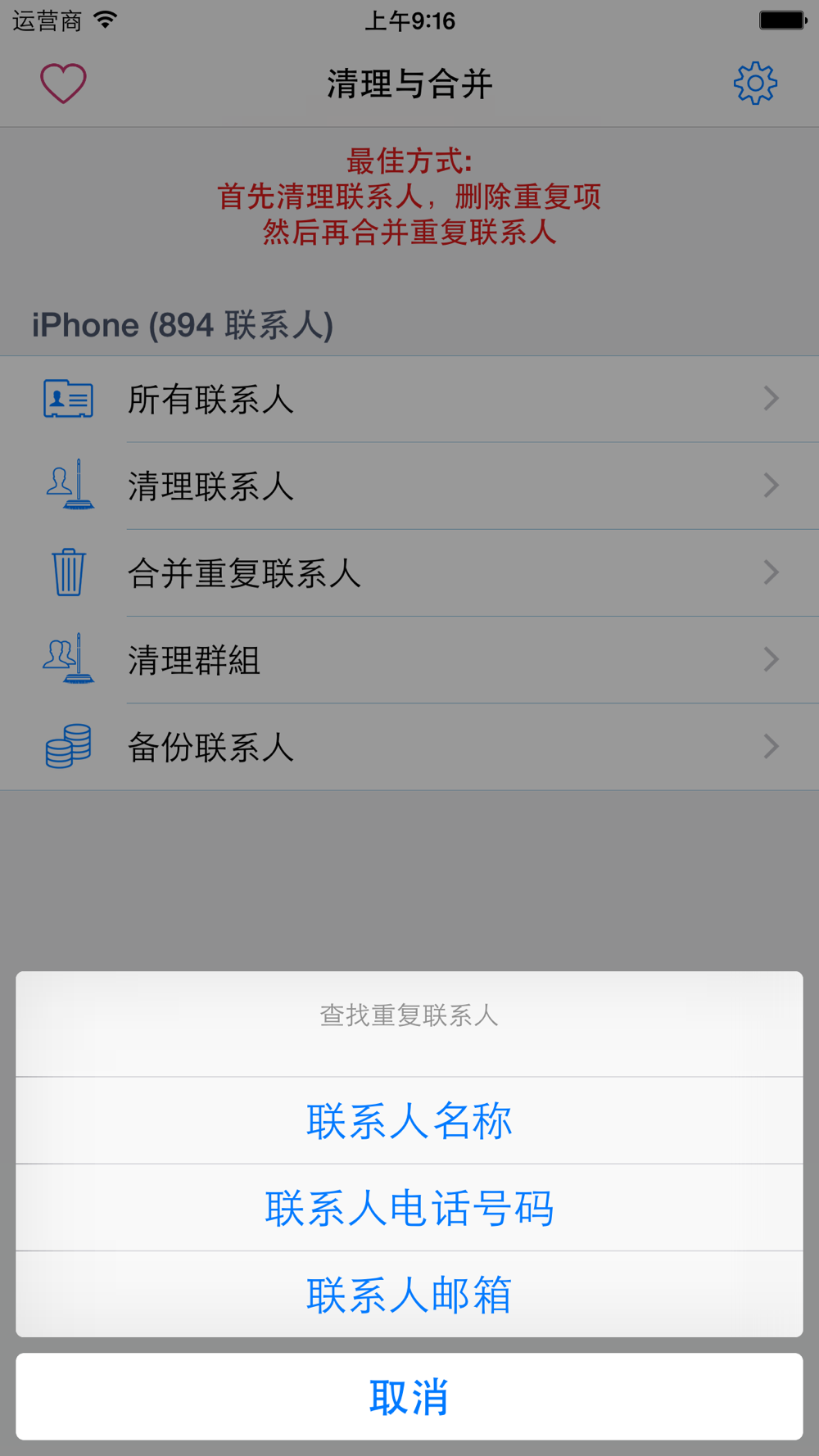 *)特别的,在执行与其它账户(Gmail, Yahoo!, iCloud,CardDAV,Exchange Server)同步之前,可以利用此应用先清理一下本地通讯录以及Gmail/Yahoo!账户内的重复和垃圾信息,避免同步后产生大量的重复记录