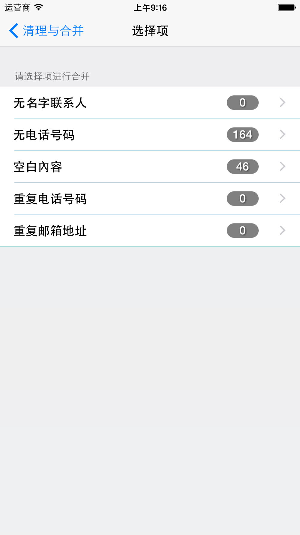*)应用可以快速、批量地去除指定账户内任意联系人中存在的重复和无用信息(例如无联系人名,无电话号码,无内容,号码重复以及邮件地址重复等等)
