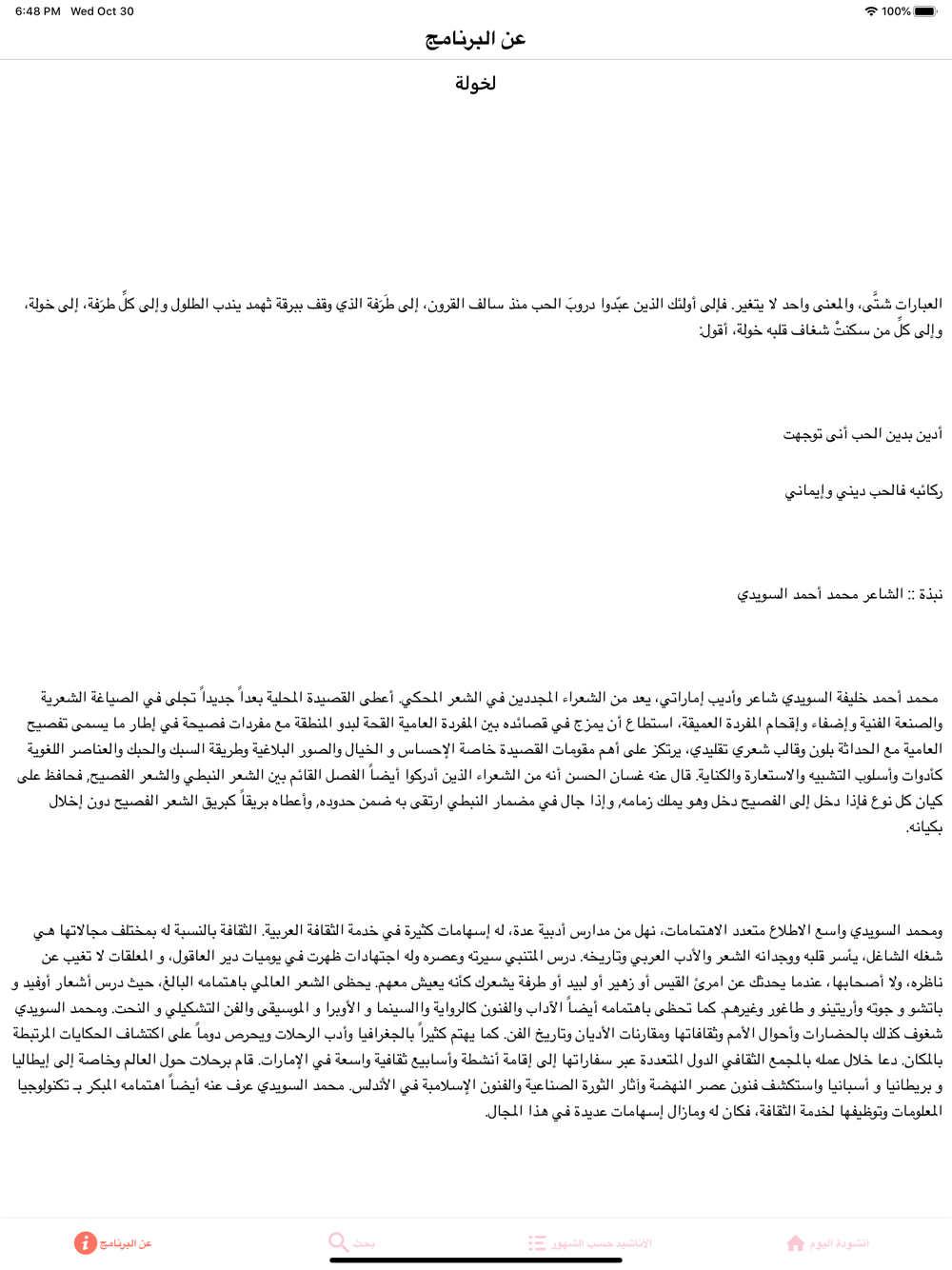 بعض الأناشيد تتضمن ملفات صوتية مسجلة بصوت الشاعر محمد السويدي