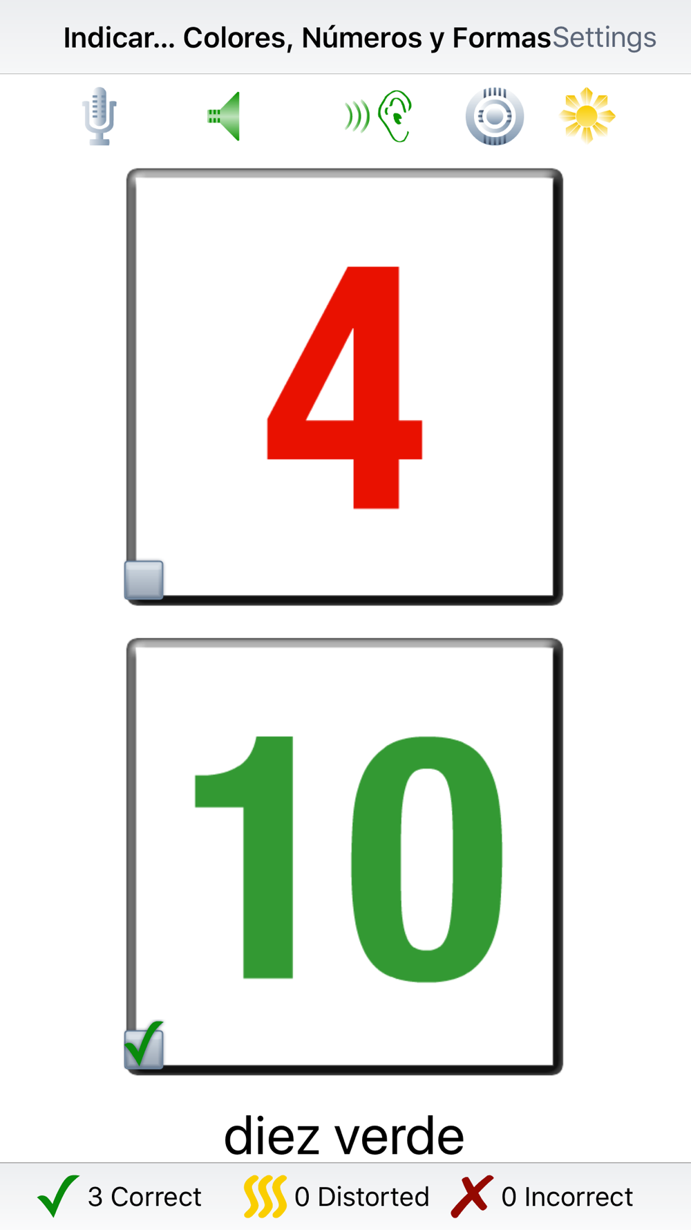 This is a simple app for teaching the Spanish names for colors, numbers, and shapes to children who will benefit from an app with no distractions.