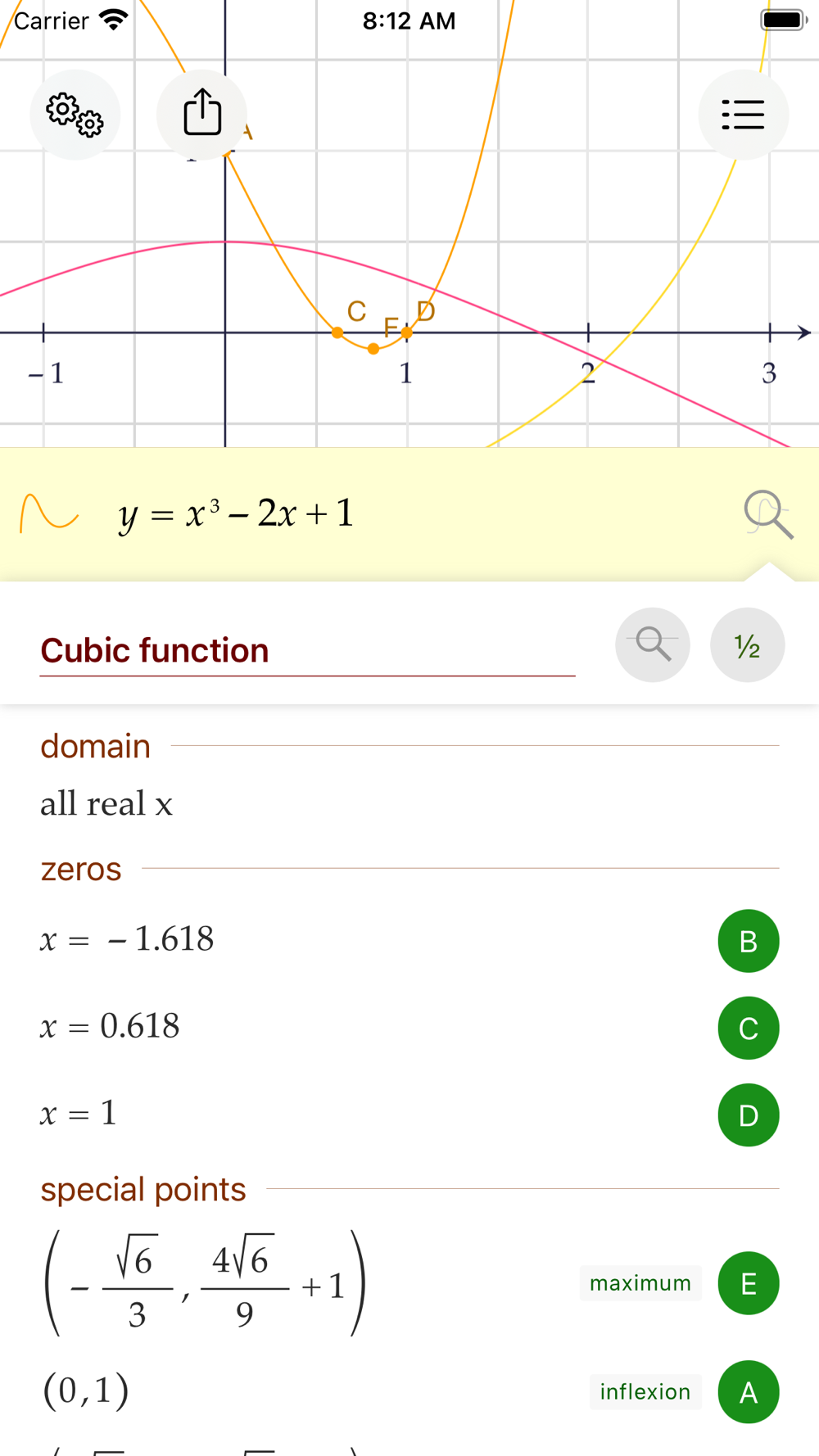 + Graph analysis, e.g. domain, zeros, min/max/inflexion points