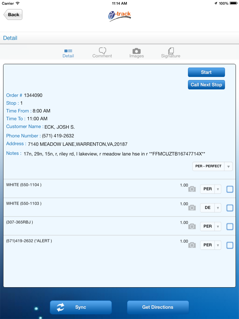 Features include real time updates on delivery, delivery errors, location tracking via GPS coordinates, delayed in traffic, held up at a location, customer signature on delivery, taking pictures of damaged deliveries or damage to property by driver while delivering.