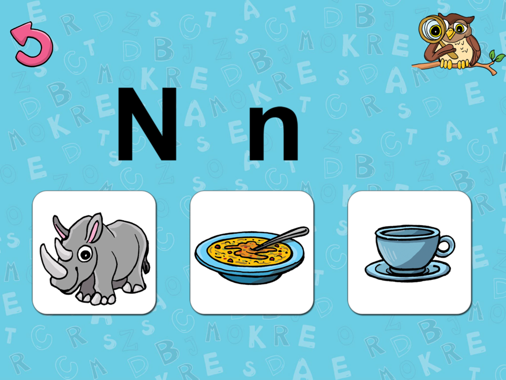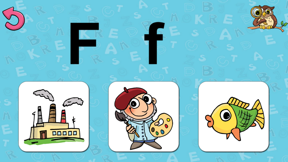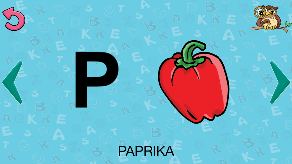 Ziel ist es, auf das Bild zu zeigen, das mit dem angezeigten Buchstaben beginnt.