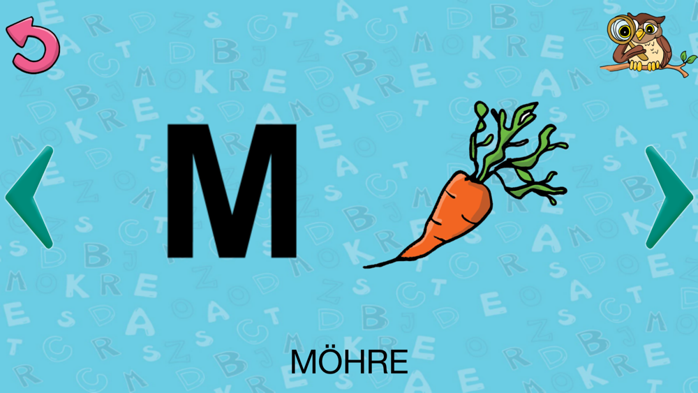 „ABC & Buchstaben lernen“ ist ein interaktives Lernspiel zum deutschen Alphabet mit schönen Bildern. "ABC & Buchstaben lernen" wurde zusammen mit Logopäden und Deutschlehrern entwickelt und von Kindern getestet.