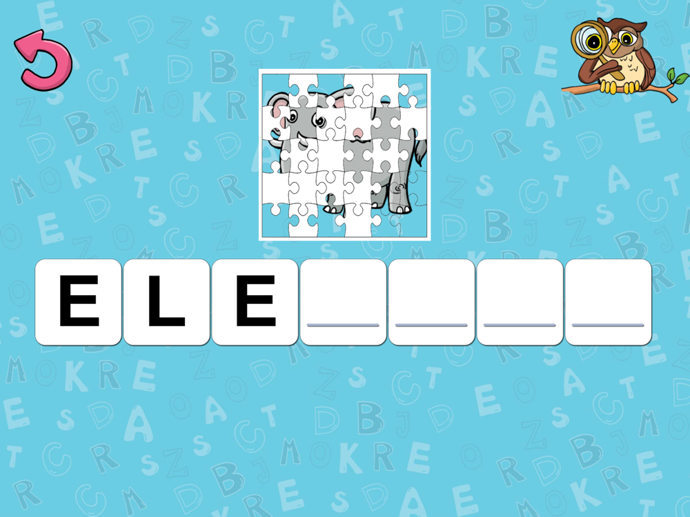 Die Kinder drehen in diesem Spiel die Felder um und decken schrittweise das auf dem Bild gemalte Wort auf. Das Bild ist ( hinter dem Vorhang ) versteckt und mit jedem neuen Buchstabe wird es ein wenig aufgedeckt. Wenn man alle Buchstaben umdreht, wird das aufgedeckte Wort vorgelesen und man sieht die ganze Illustration.