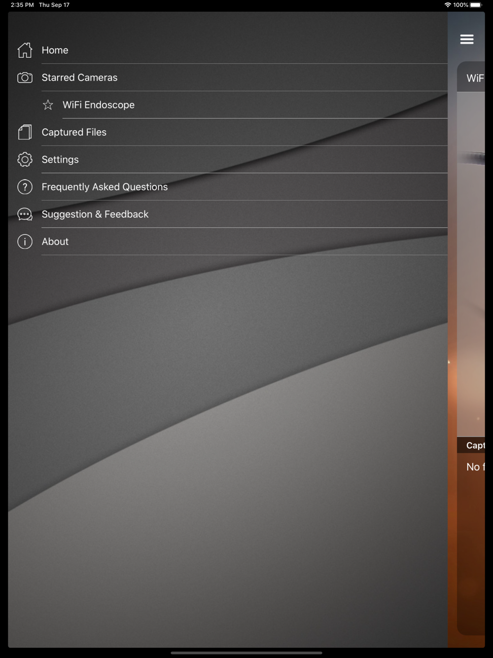 Wi-Fi Endoscope camera is a portable, hand-held, multifunctional inspection camera system equipped with a powerful wireless module which provides stable WiFi connection. Users can view the videos in iPod, iPhone, or iPad devices and can capture images (JPG) or videos (MP4) in 720P high definition with this application.