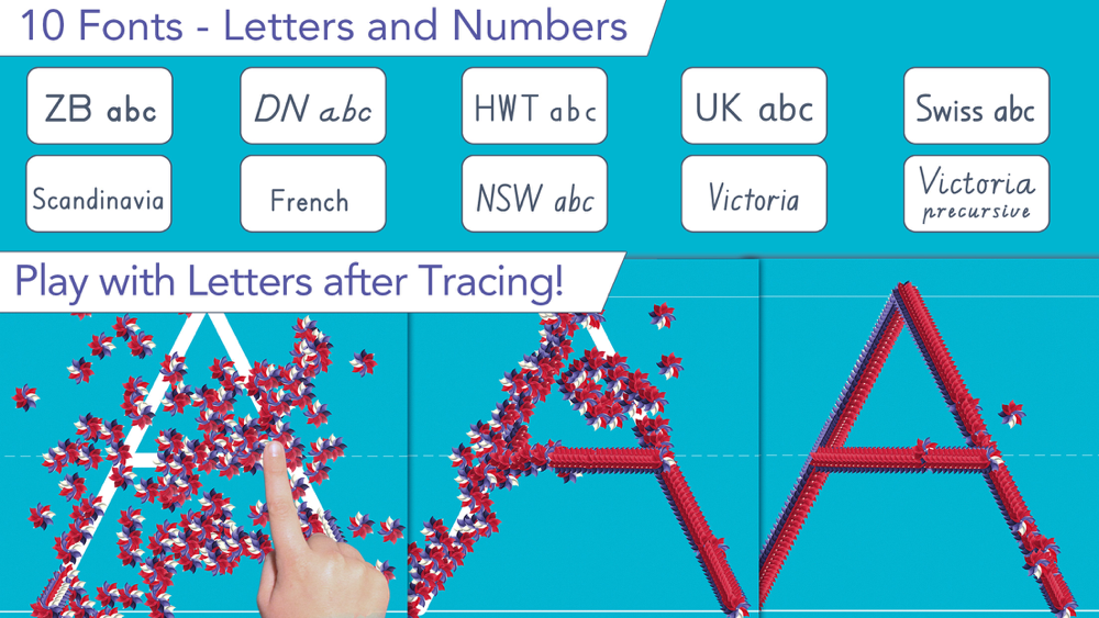 • Fun tracing using 50+ animated stickers, sound effects and interactive games that animate letters at the end of tracing