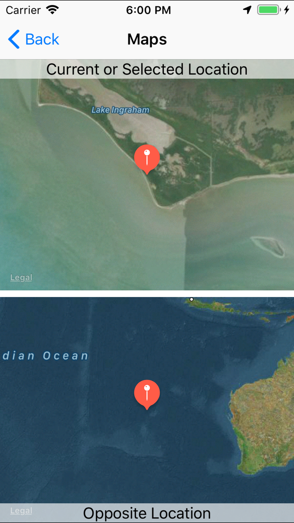 ‘World Flip’ is an app designed to enable you to view what is on the exact opposite side of the world from either your current location or a selected location. World Flip will provide both the Latitude and Longitude for both your current location or selected location and the exact opposite side of the world Latitude and Longitude from either your current location or selected location along with a map showing both locations on the same screen.