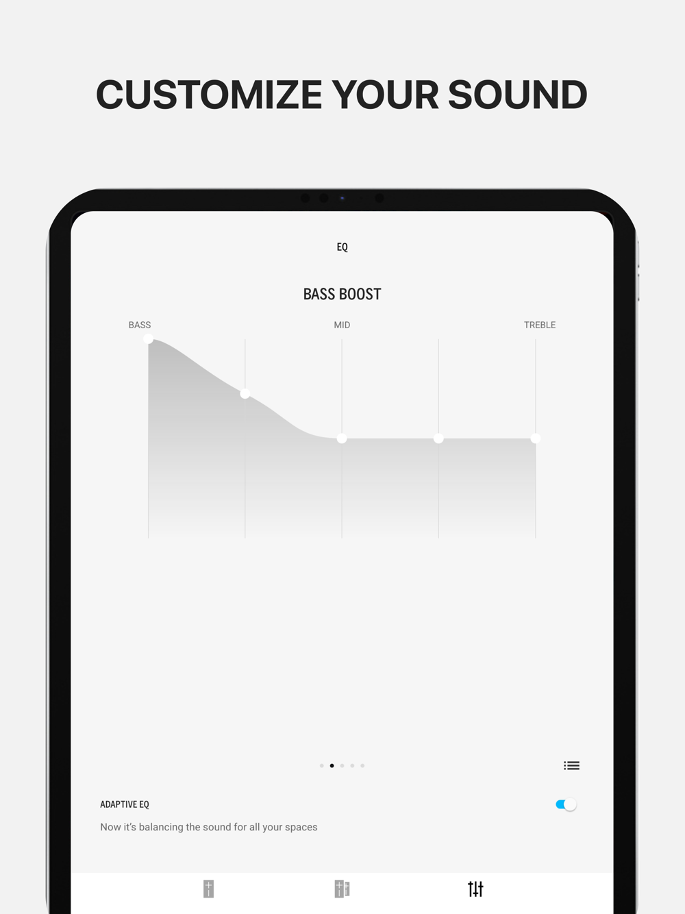 - You control the sound: All about that bass? In a tight space? You control the atmosphere with a couple of built-in EQ and custom options.