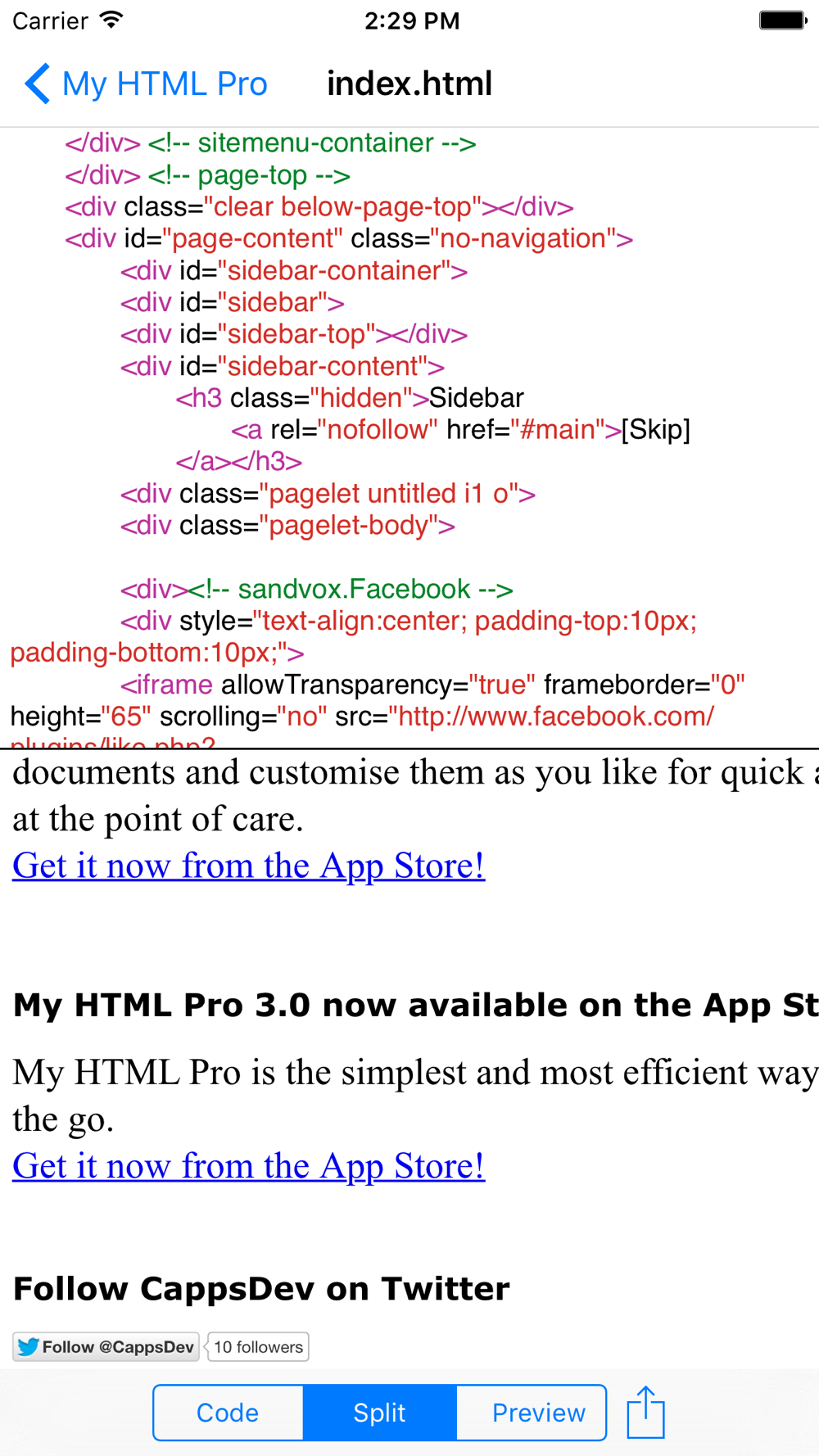 My HTML Pro is the simplest and most efficient way to edit web pages on the go. With its intuitive interface, full syntax highlighting and many other useful features editing HTML code on your iOS device has never been this easy. It is also a universal app so you can use it on both your iPhone and iPad at no extra charge.