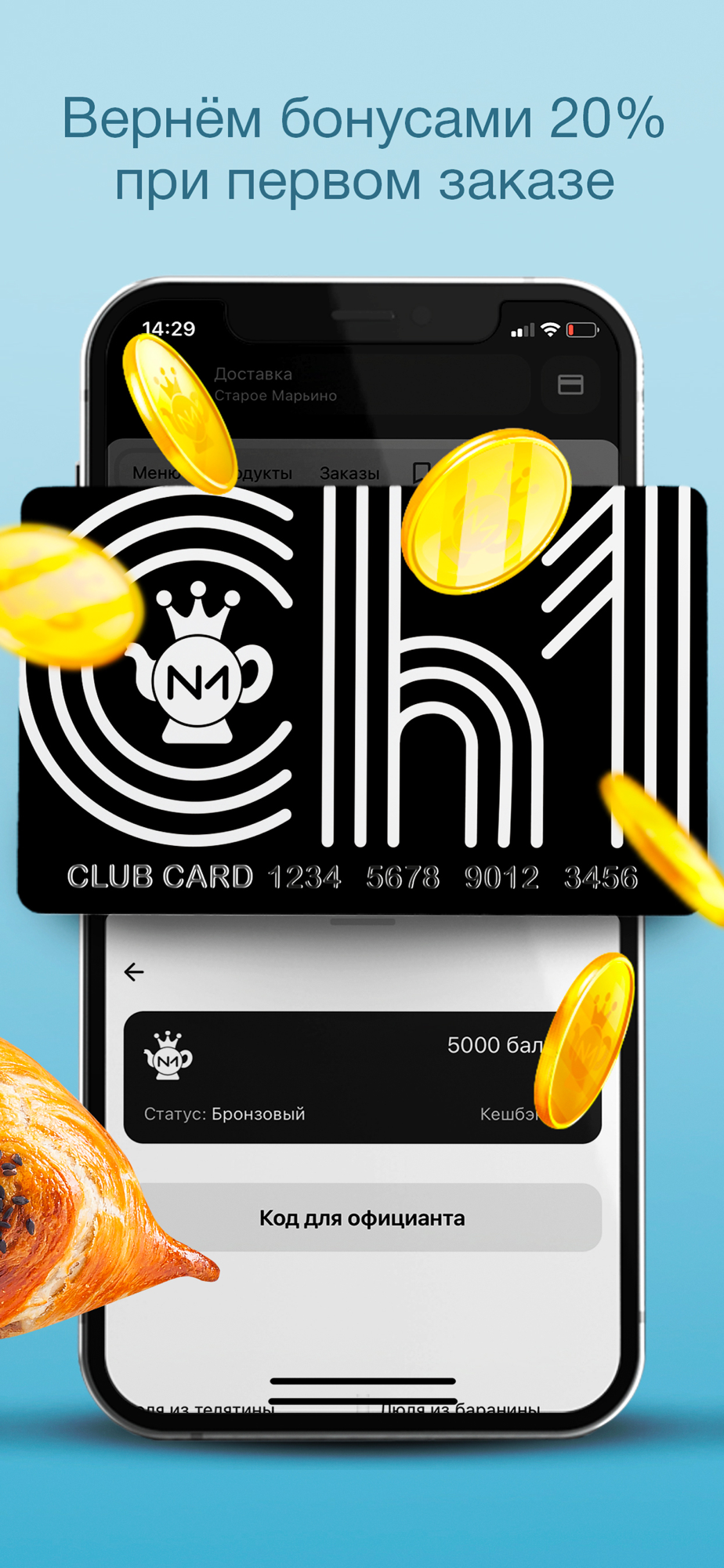 Мы заменили скидки на бонусные баллы. 1 балл = 1 рубль. Бонусы — до 20%. Оплачивайте баллами до 50% стоимости заказа в приложении или ресторане.