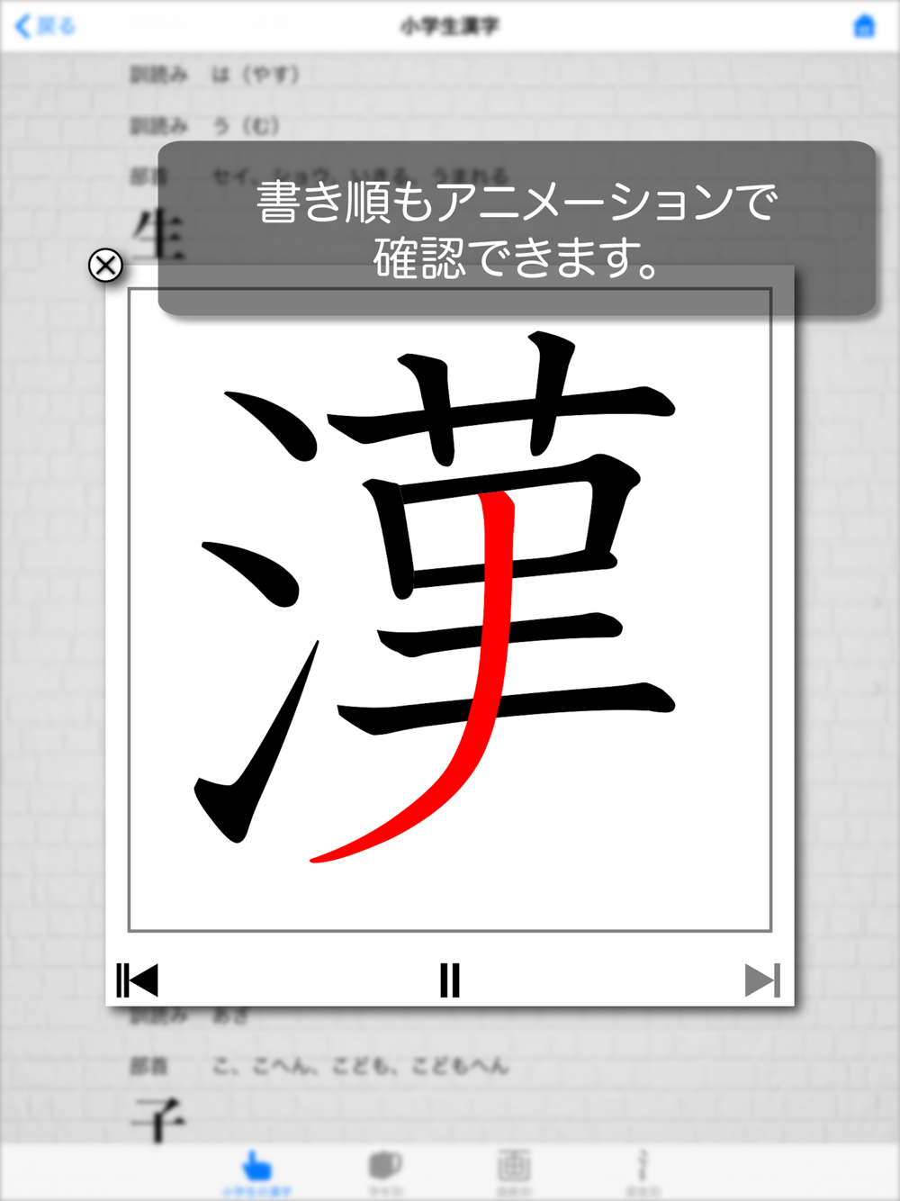 + まずは小学校で習う漢字の書き順に対応しました。