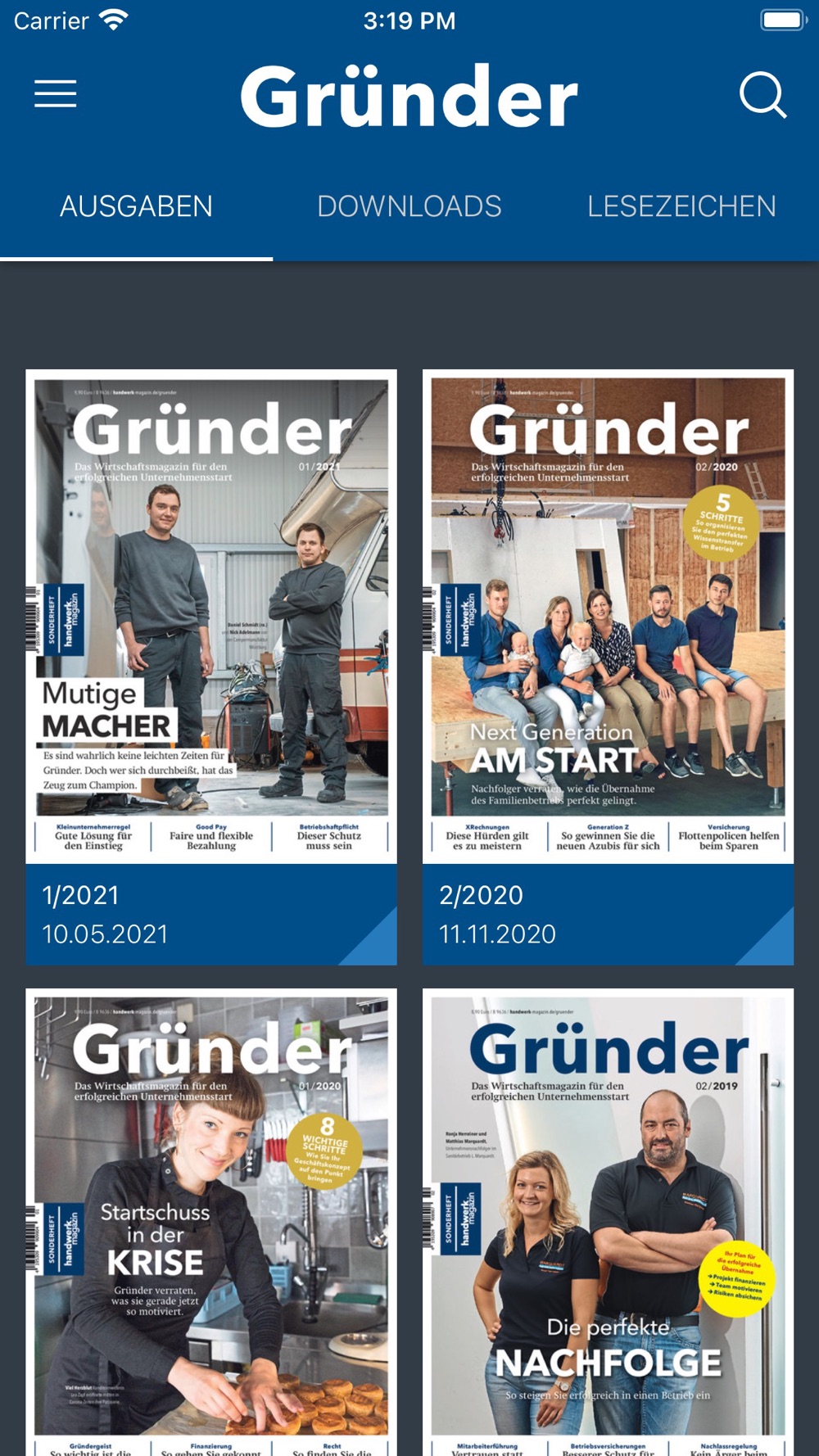 Gründer ist ein Wirtschaftsmagazin für Unternehmensgründer und -nachfolger. Die Themenschwerpunkte sind Gründung, Nachfolge, Firmenverkauf, Geschäftschancen, Finanzierung, Fördermittel, Marketing, Mitarbeiter, Steuern und Recht. Alle Texte bieten umfangreichen Nutzwert wie Checklisten, Tabellen, Rechnungen. Gründer erscheint zweimal im Jahr. Es ist ein Sonderheft von handwerk magazin, dem Wirtschaftsmagazin für Handwerksunternehmer.