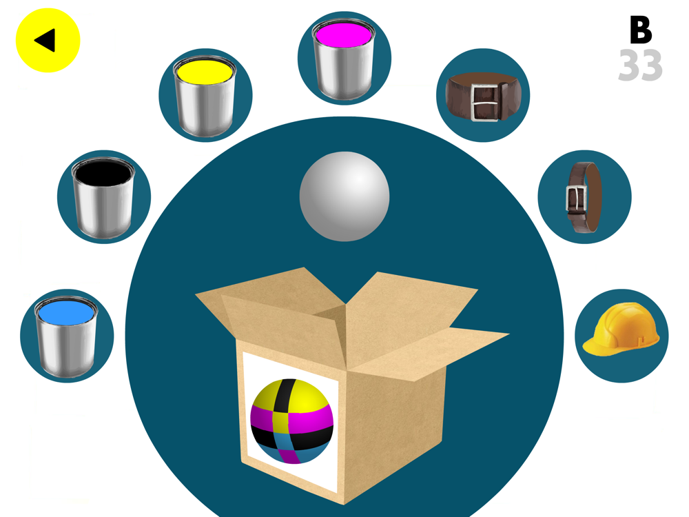 In each level, you'll see the target design of your ball on the shipping box. Starting from a plain white ball, get to work by clicking the tools you want to use and try to manufacture the correct ball.