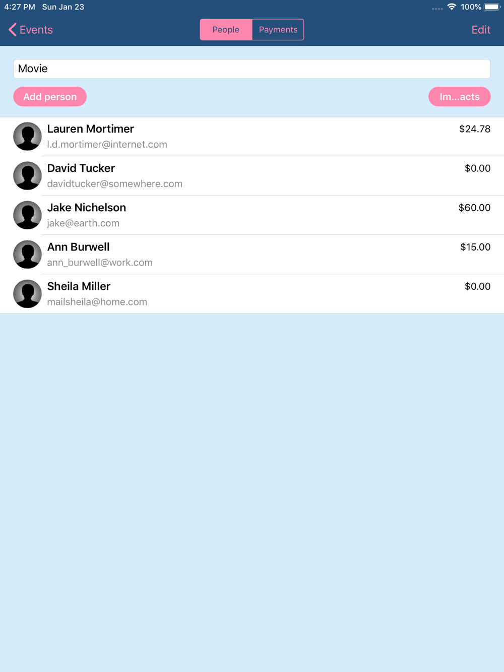 - There is no need to enter everyone by hand. You can simply import them from your Contacts.