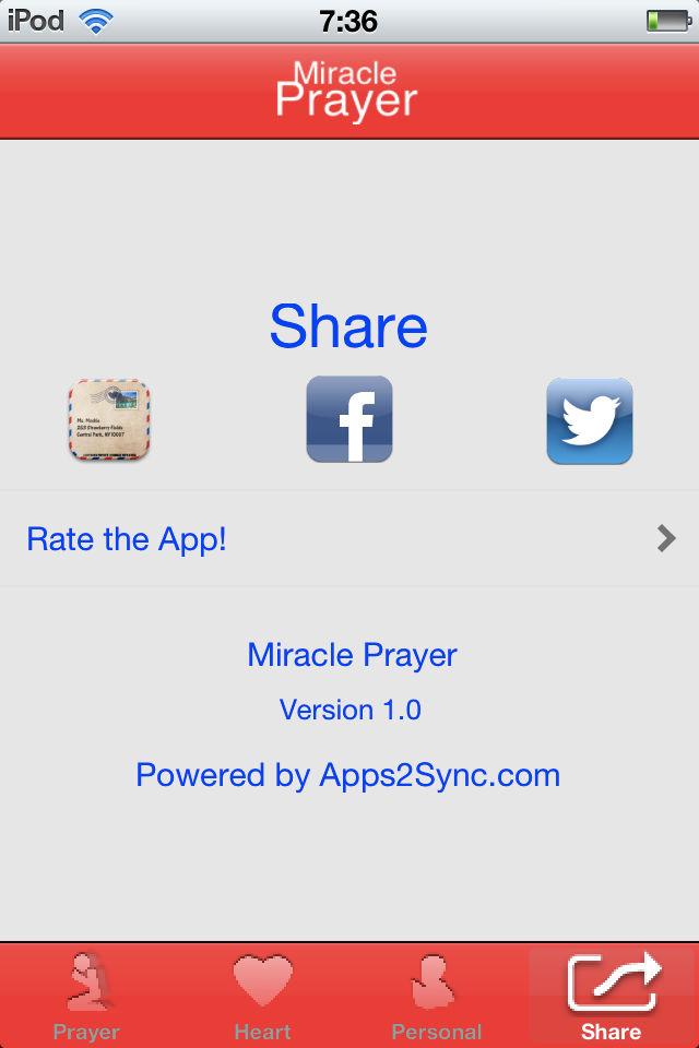 You can share this app with your friends through Facebook, Twitter and email to people who are really in need of prayers or if you are interested to share only a particular prayer which may be of interest to your contact you can do it individually.