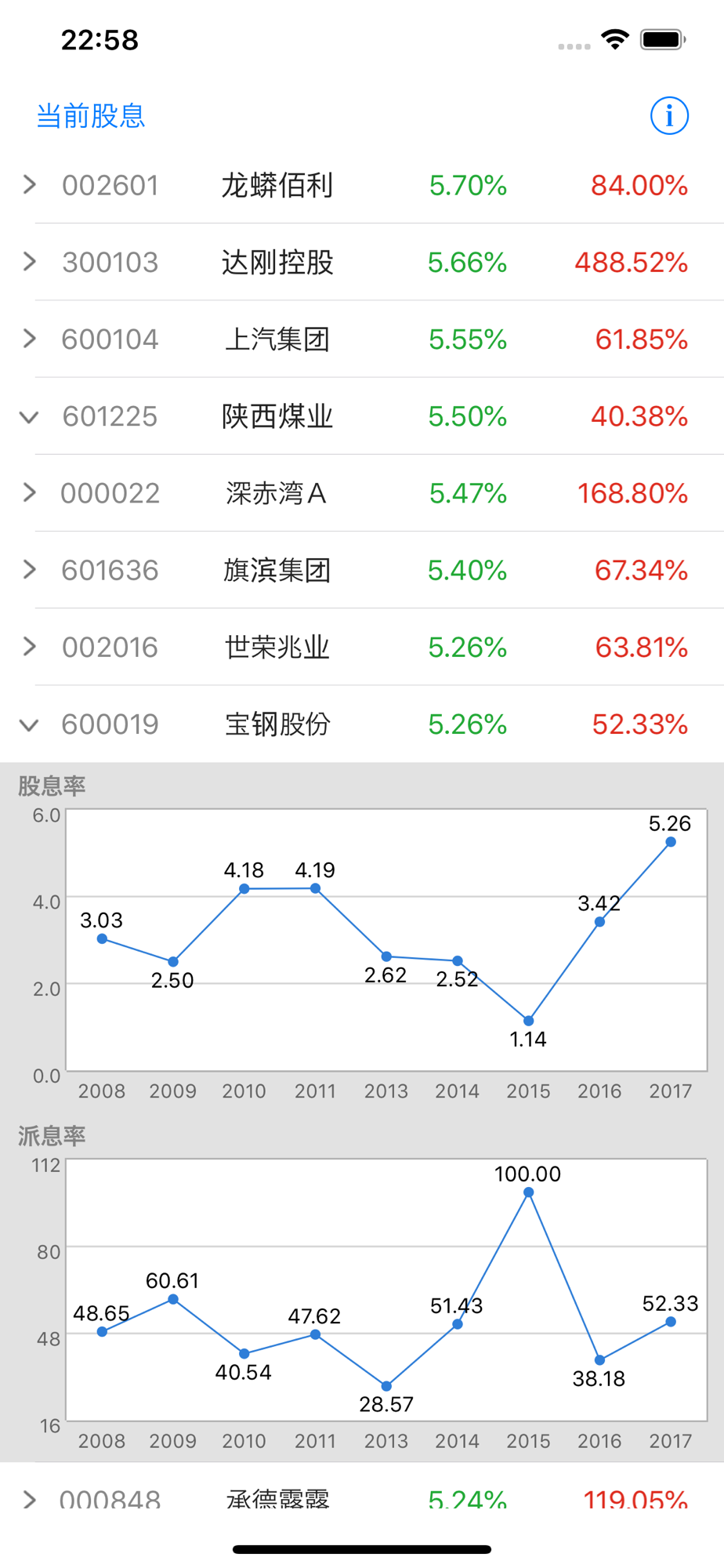 股息Lite是一款统计分析A股股票股息率,派息率的软件, Lite版本只提供30次查看数据曲线功能。