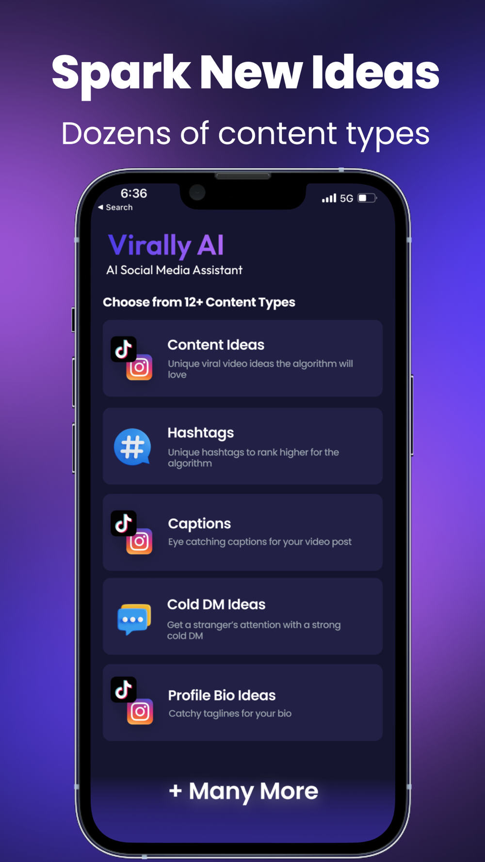• Generate - Tell Virally what your TikTok or Reel is about and let it generate Content Ideas, Hashtags, Captions for you! Trendtok on Tiktok! One click to Save to your account or Clipboard.