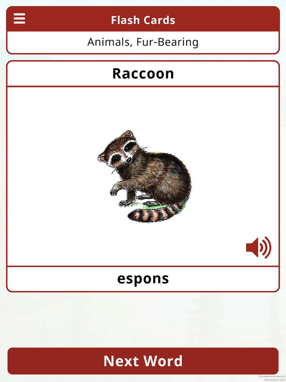 Build your Wolastoqey vocabulary with the Kehkimin Vocab Builder game for your iPhone or iPad. Quiz yourself every day to learn different categories – animals, food, drinks, and more! The app includes: