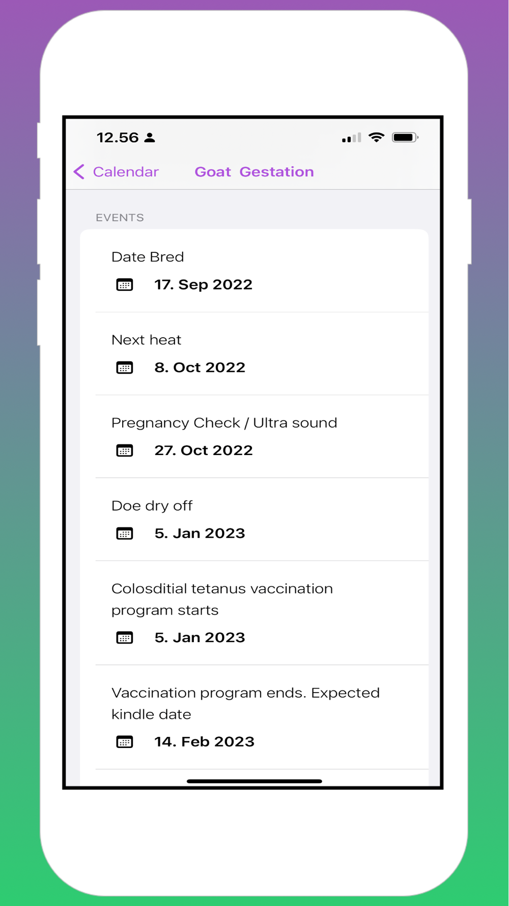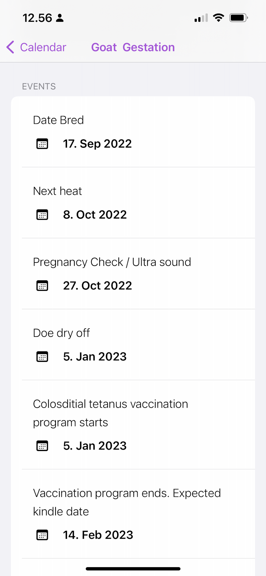 Using the gestation calculator is very easy is really simple. From the first screen choose the animal you are interested in. Once you choose the application choose the breeding date and the application will automatically calculate the events coming ahead.