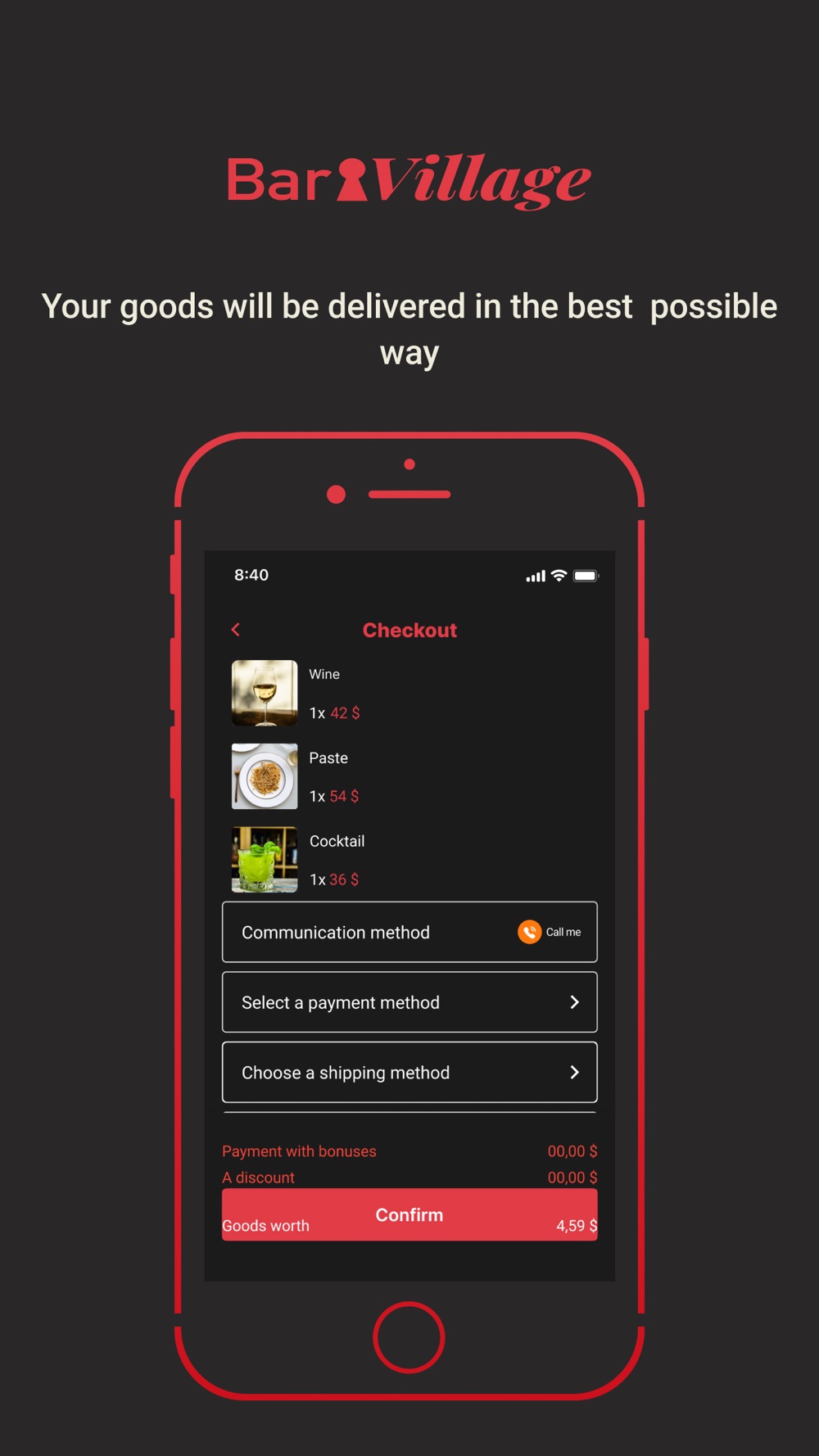 Life is too short to spend it in line at the bar. BarVillage is for those who don't want to catch waiters, shout over the music to call the bartender, or sit around like a fool with your hand up, hoping to be noticed. And then waiting forever for your drink in the crowd at the bar. With BarVillage you can come to the bar… and drink immediately!