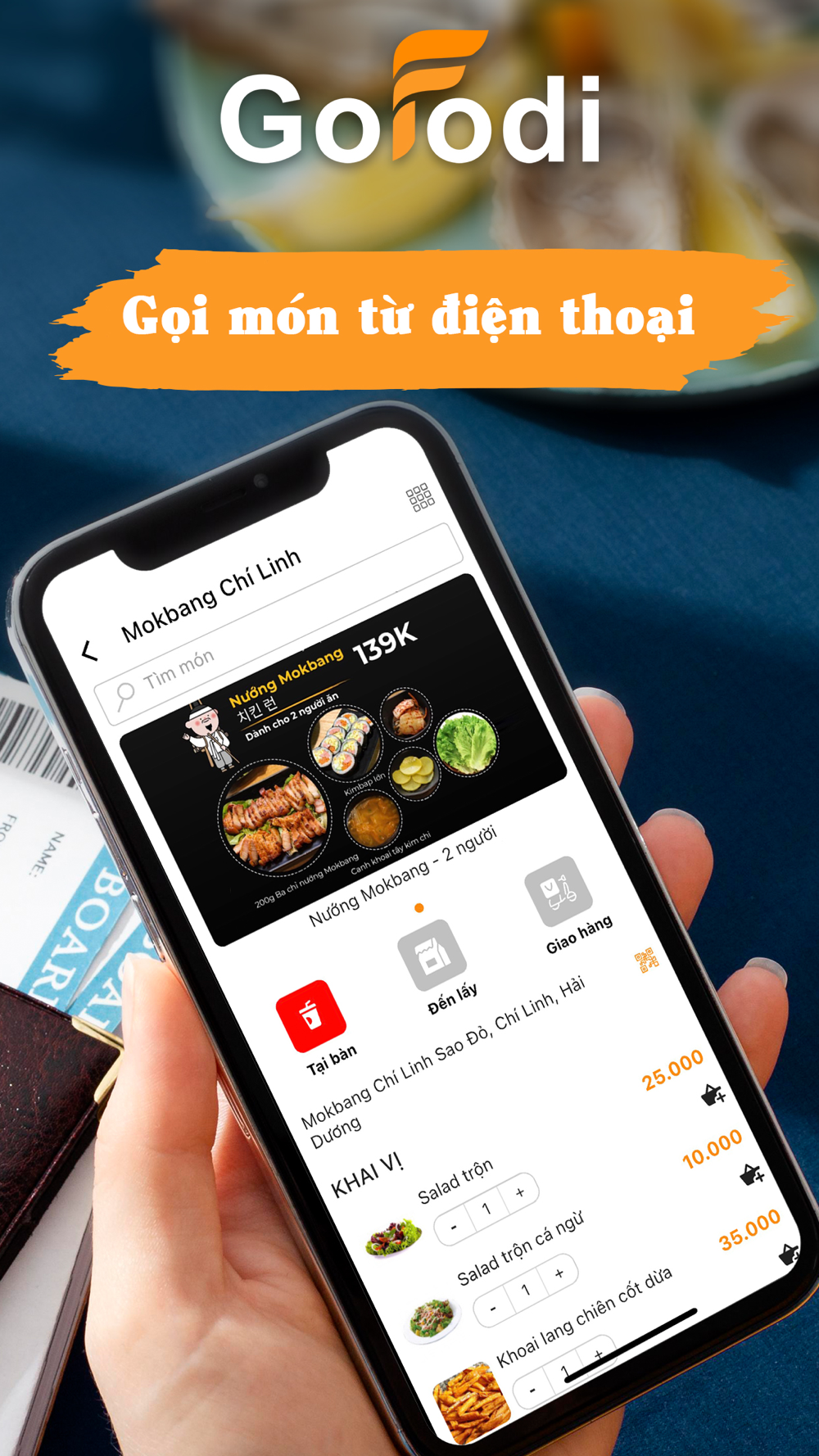 Ứng dụng Gofodi gọi món bằng điện thoại là một phương tiện tiện lợi giúp khách hàng có thể đặt món ăn và thức uống trực tiếp từ điện thoại của mình mà không cần phải liên lạc trực tiếp với nhân viên phục vụ.