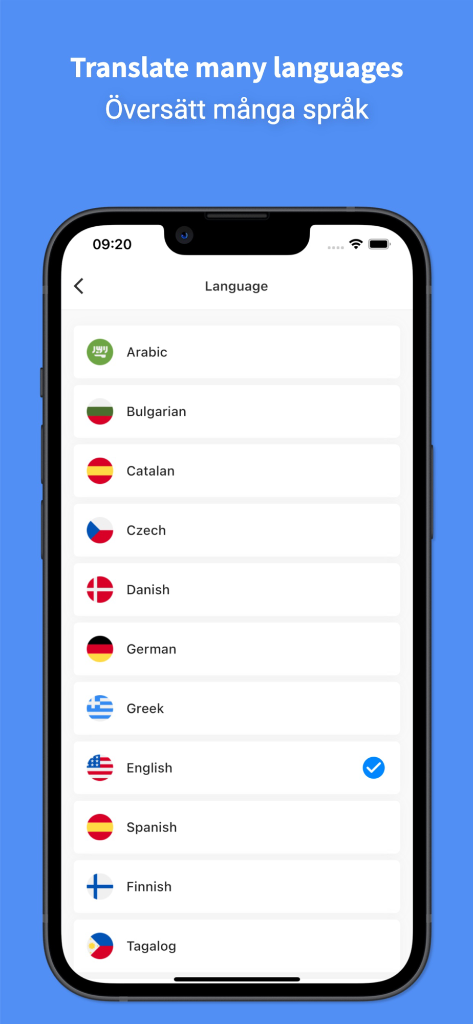 • Switch between different dialects from any language to swedish or swedish to another language.