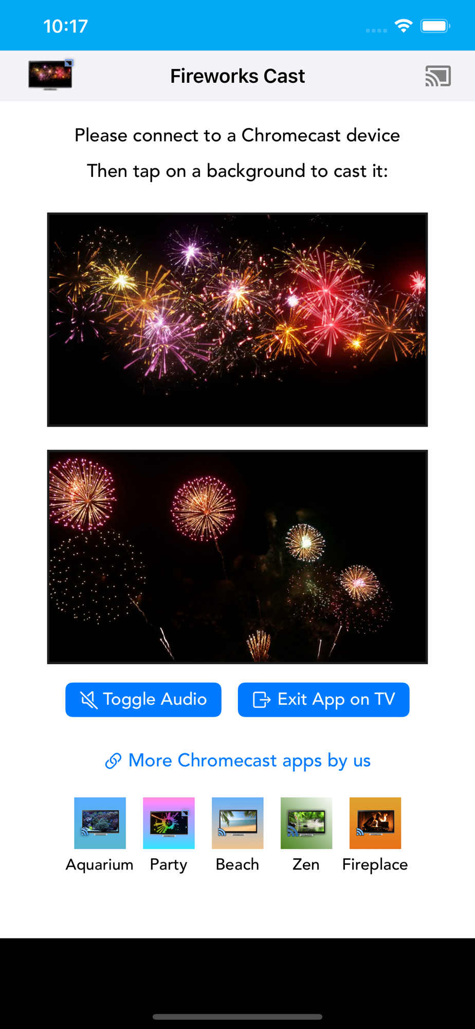 You can choose from two types of vibrant firework displays as the live background for your TV (that has a connected Chromecast device). You can select the background with your iPhone or iPad.