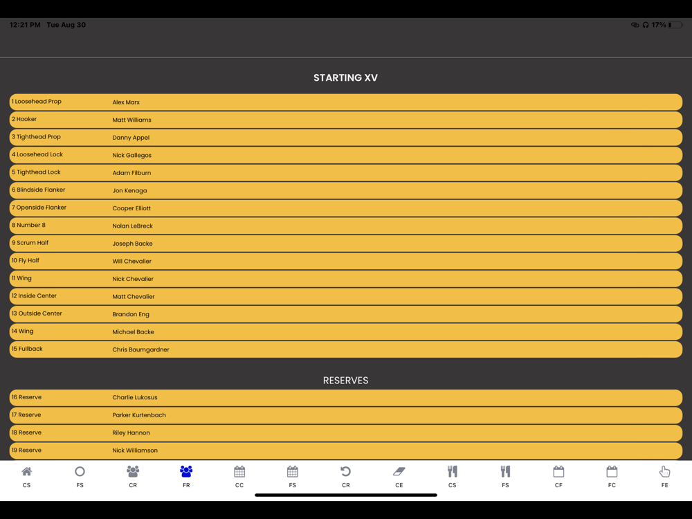 This is the Coaches App for the Neuqua Wildcats Rugby Team which allows you to keep up on the score, who is in the game, and a calendar for all Iowa State Rugby Games.