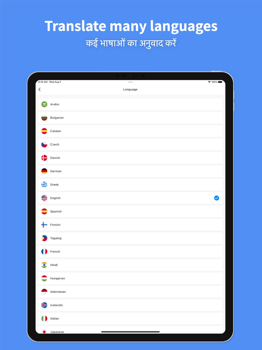 Real-time text translation for phrases and words, voice from any language to hindi. From keyboard, you can choose any language, type easily. Learn languages more convenient