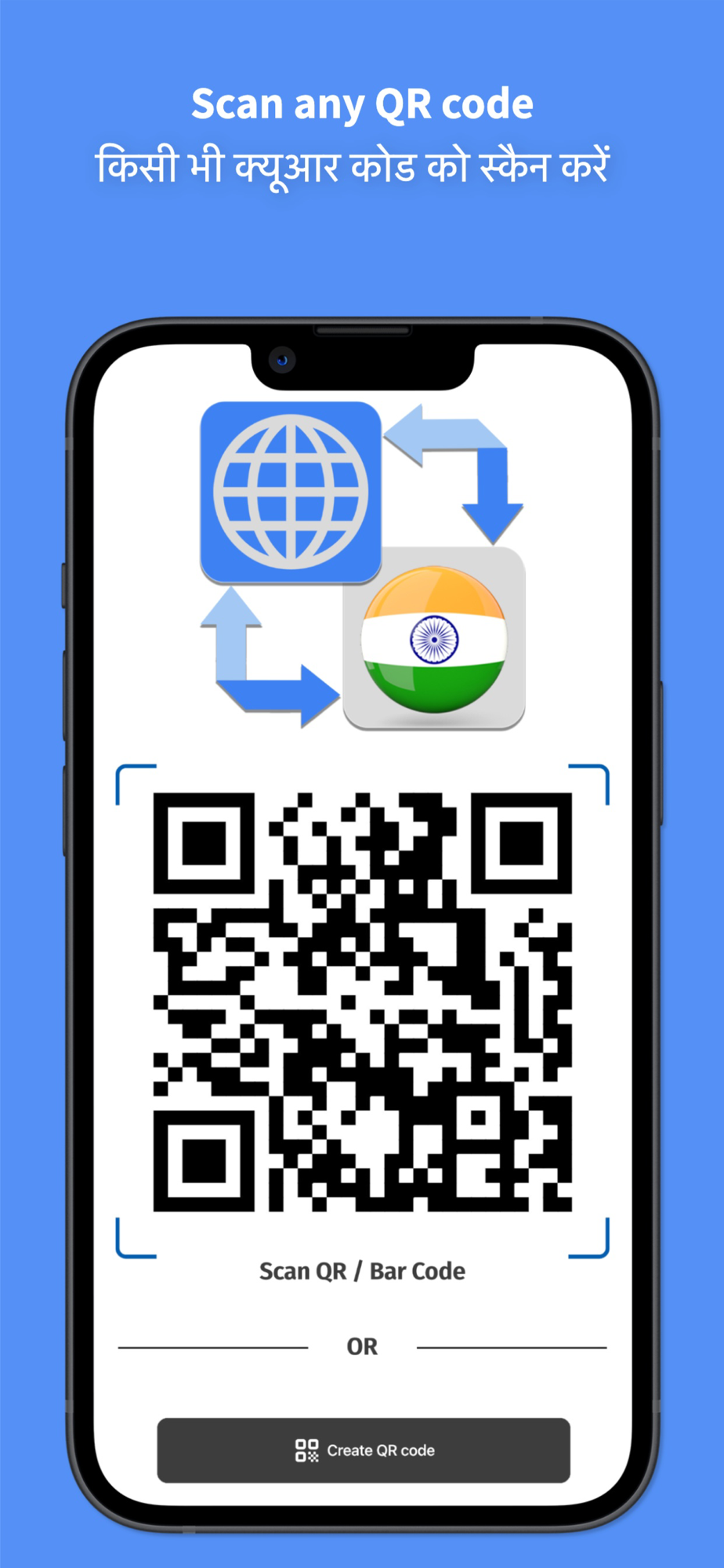 • Use your camera to instantly translate menus or signs and more from any language to hindi.