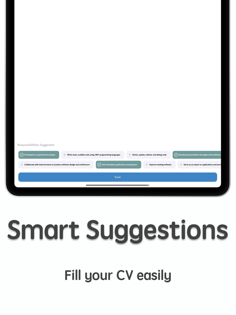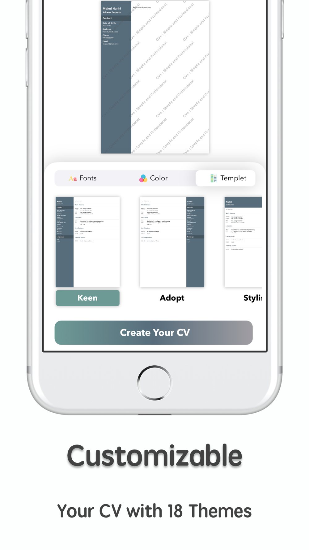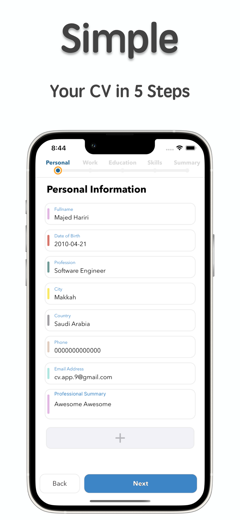 CV helps you build a professional resume in five easy steps and allows them to export the CV as a PDF file so that you can apply anywhere! With its stunning design and incredible ease of use, CV has redefined what an app should be.