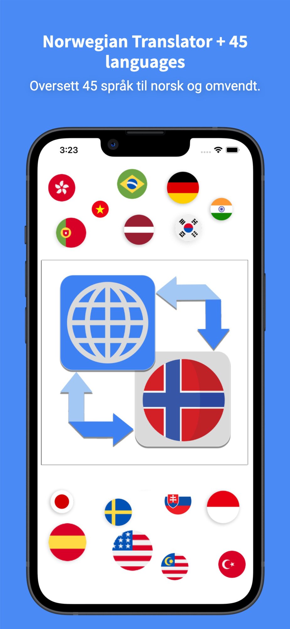 Hi ! NorwayGo is the leading norwegian Translator with a lot of outstanding features such as accurate voice translator, translate any text in 45 languages to norwegian or norwegian to any language such as: English, Korean, German, Japanese, Vietnamese, French, etc and extremely useful photo translating feature or learn norwegian more easily.