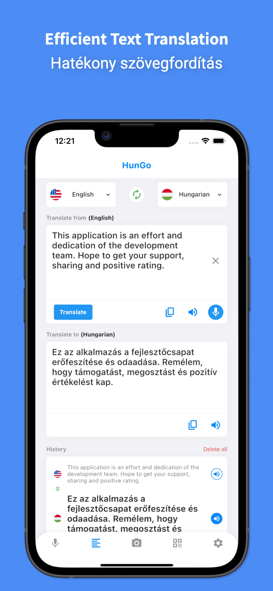 HunGo is the leading Hungarian Translator App with many outstanding features such as accurate voice, text & photo translation from Hungarian to 45 languages and vice versa.