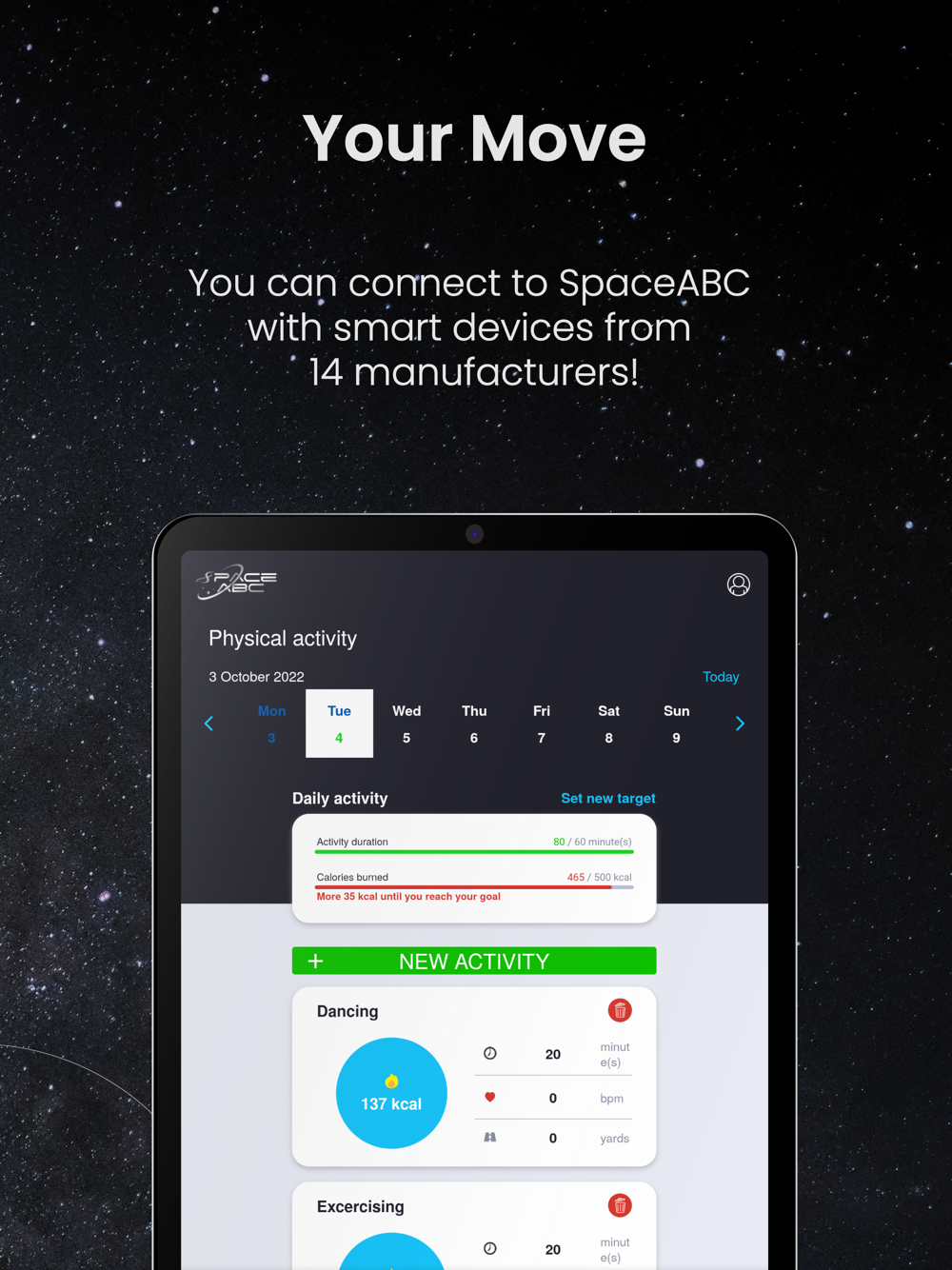 Furthermore, SpaceABC can receive sleep time, number of steps, heart rate data via integration with Apple Health.