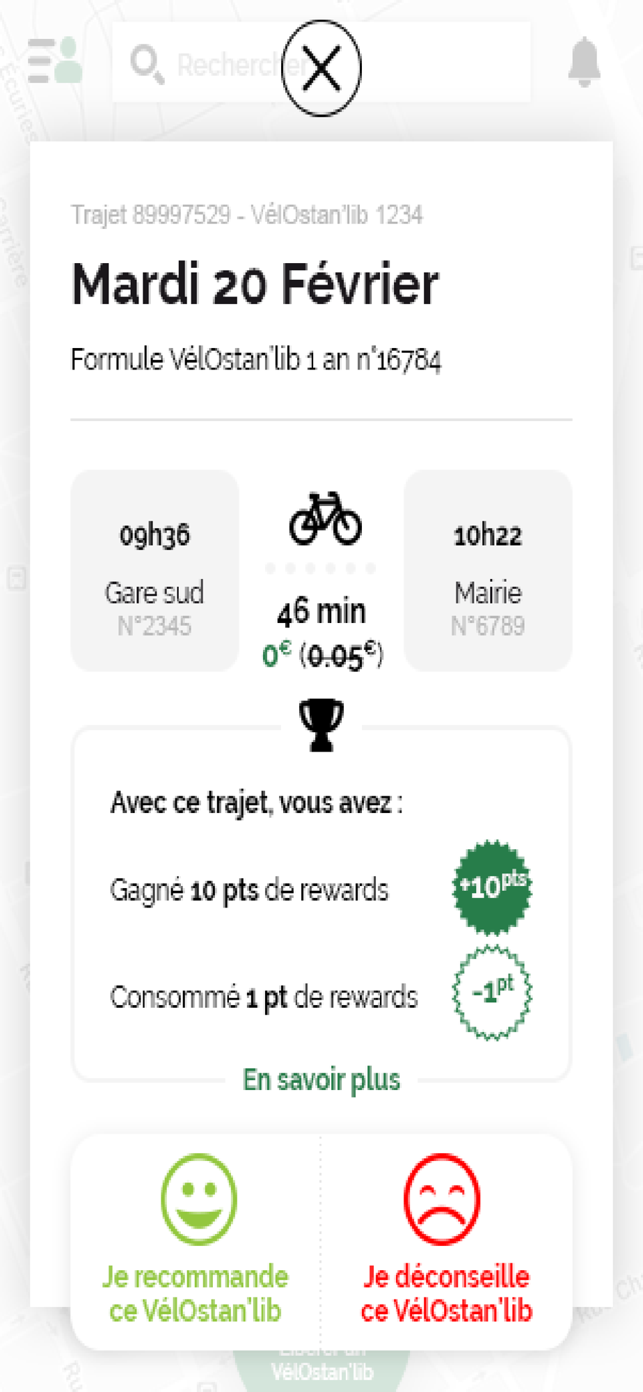 At the end of your trip you receive a notification on your mobile which confirm that your bike has been properly returned and ask you to share your experience with the VélOstan'lib users community!