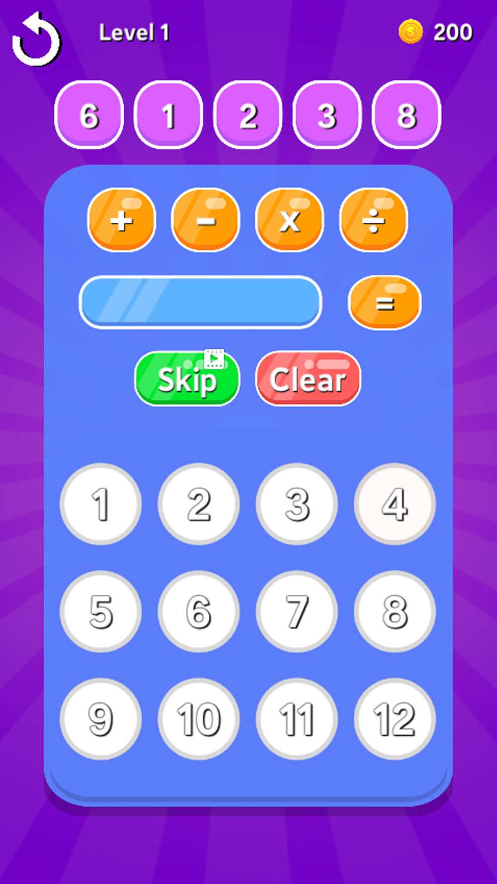 Smart Math é um jogo simples onde você deve criar e resolver contas para ganhar pontos e avançar níveis.