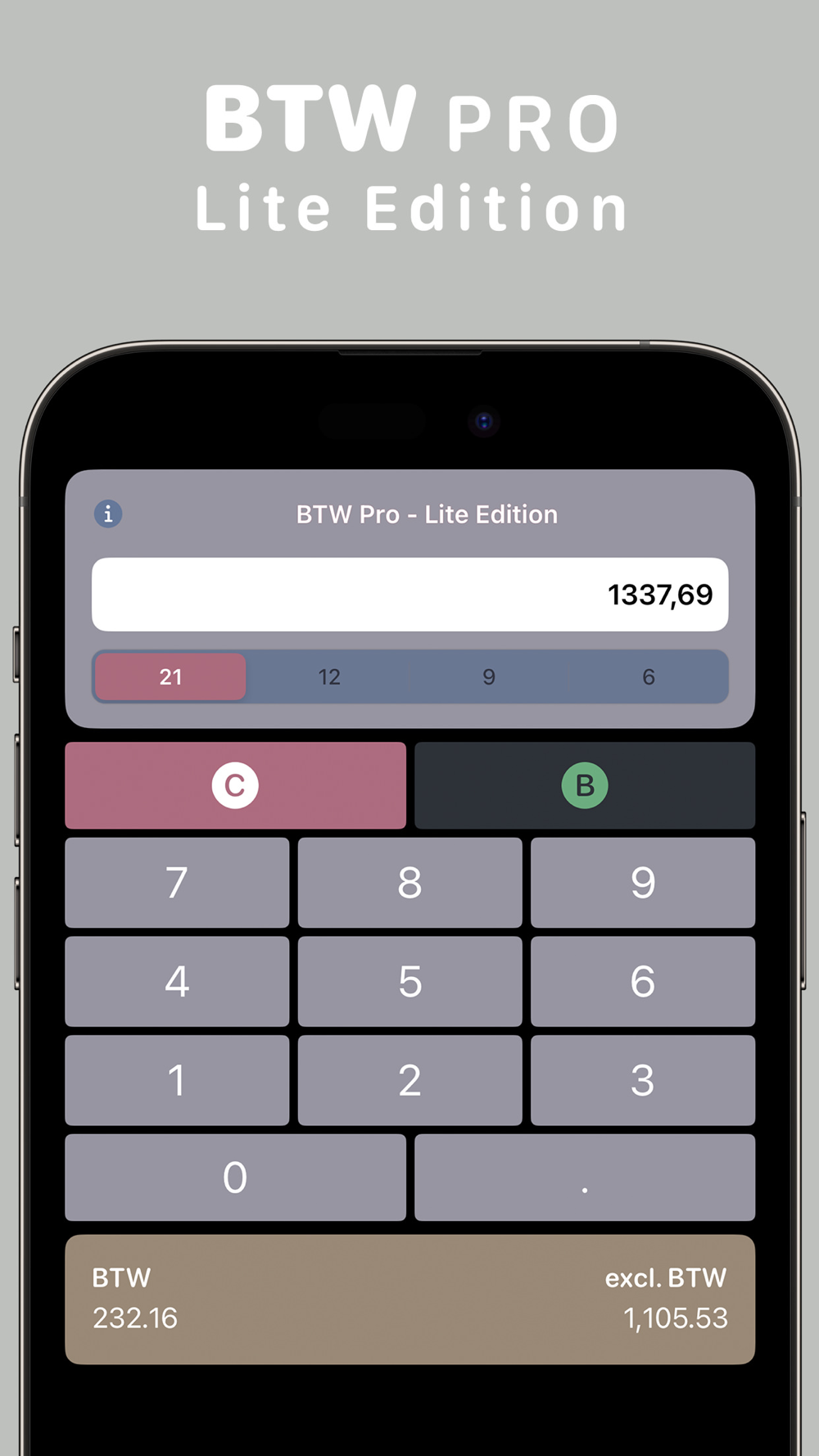 BTW Pro is the only BTW / VAT Calculator app you need for simple, fast and accurate BTW / VAT calculations.