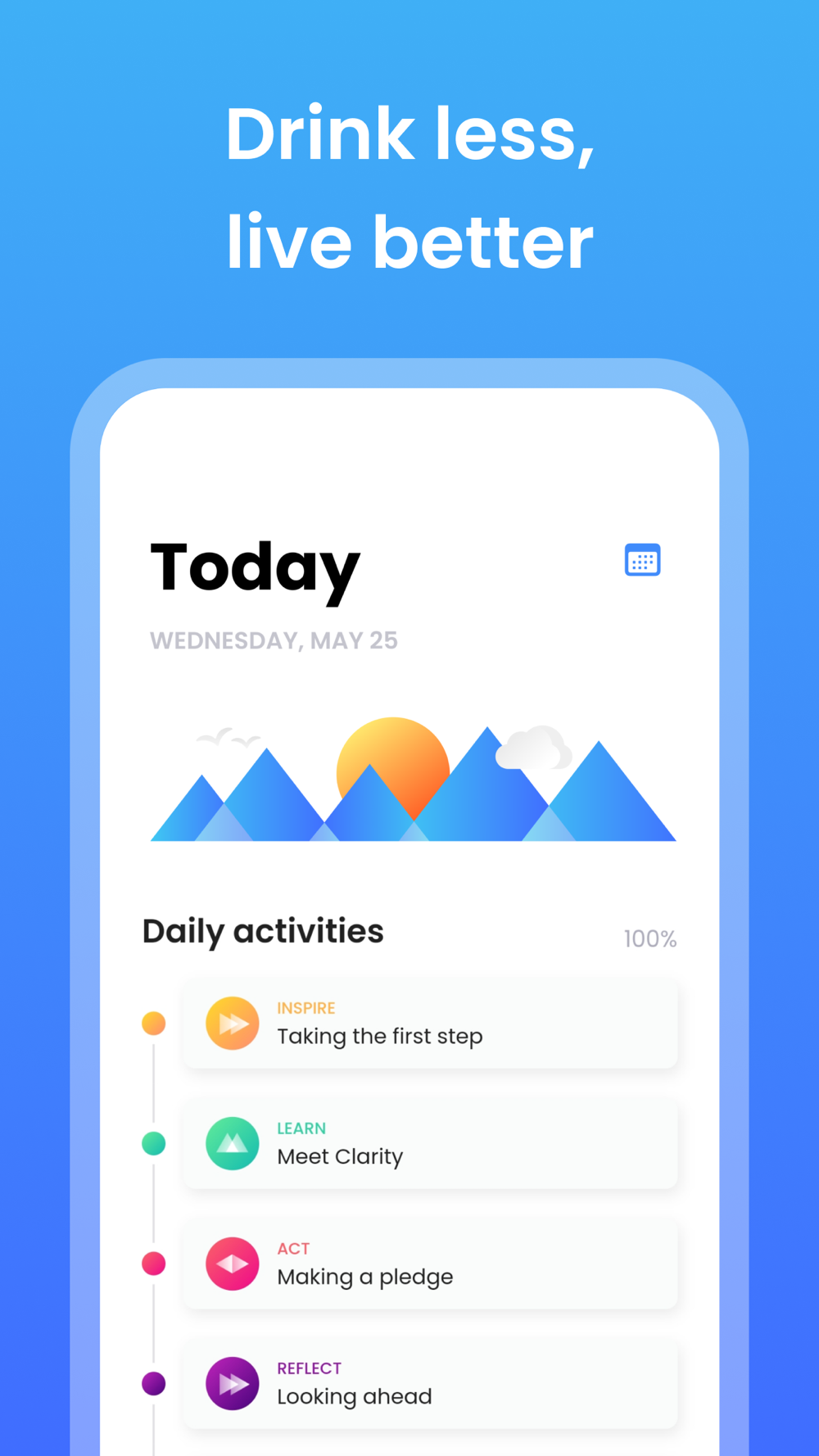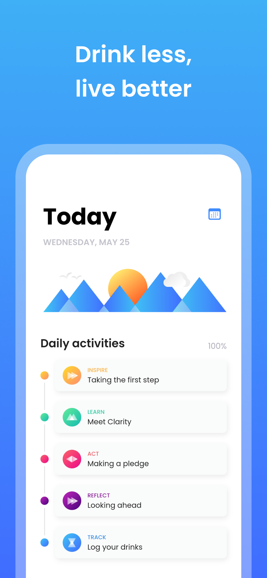 Whether you’re looking to cut back, become a more mindful drinker, or stop drinking completely, Clarity can help. We use insights from psychology, neuroscience, and behavior change to create a program tailored to you and your goals.