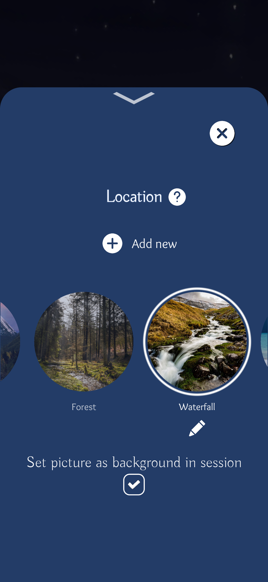 - Option to add a location for your meditation (you can also attach a picture to the location)