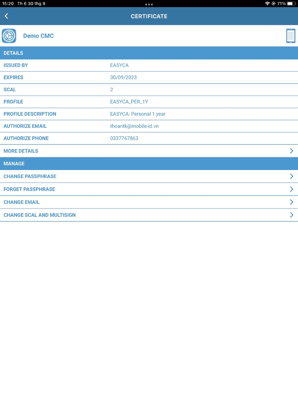 - AUTHENTICATE USING TOUCHID, FACEID OR PIN CODE TO ACCESS AUTHORIZATION KEY