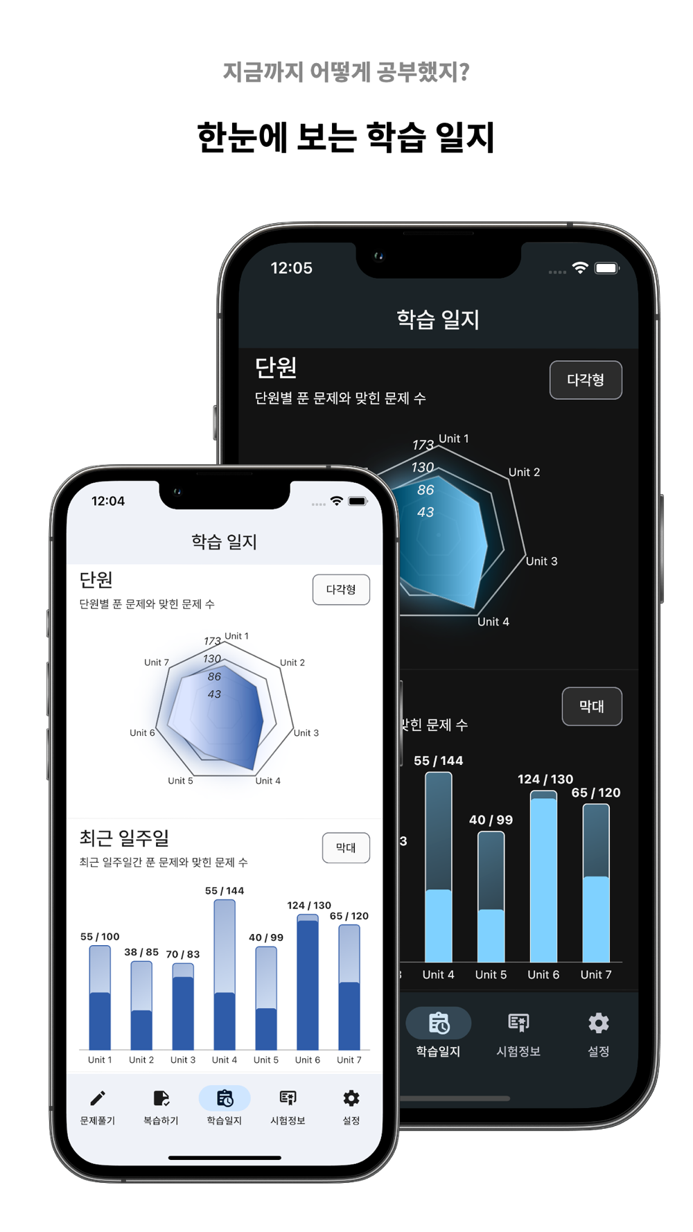 - 각 단원별로 내가 몇문제를 풀었고 몇문제를 맞췄는지 바로바로 보기!