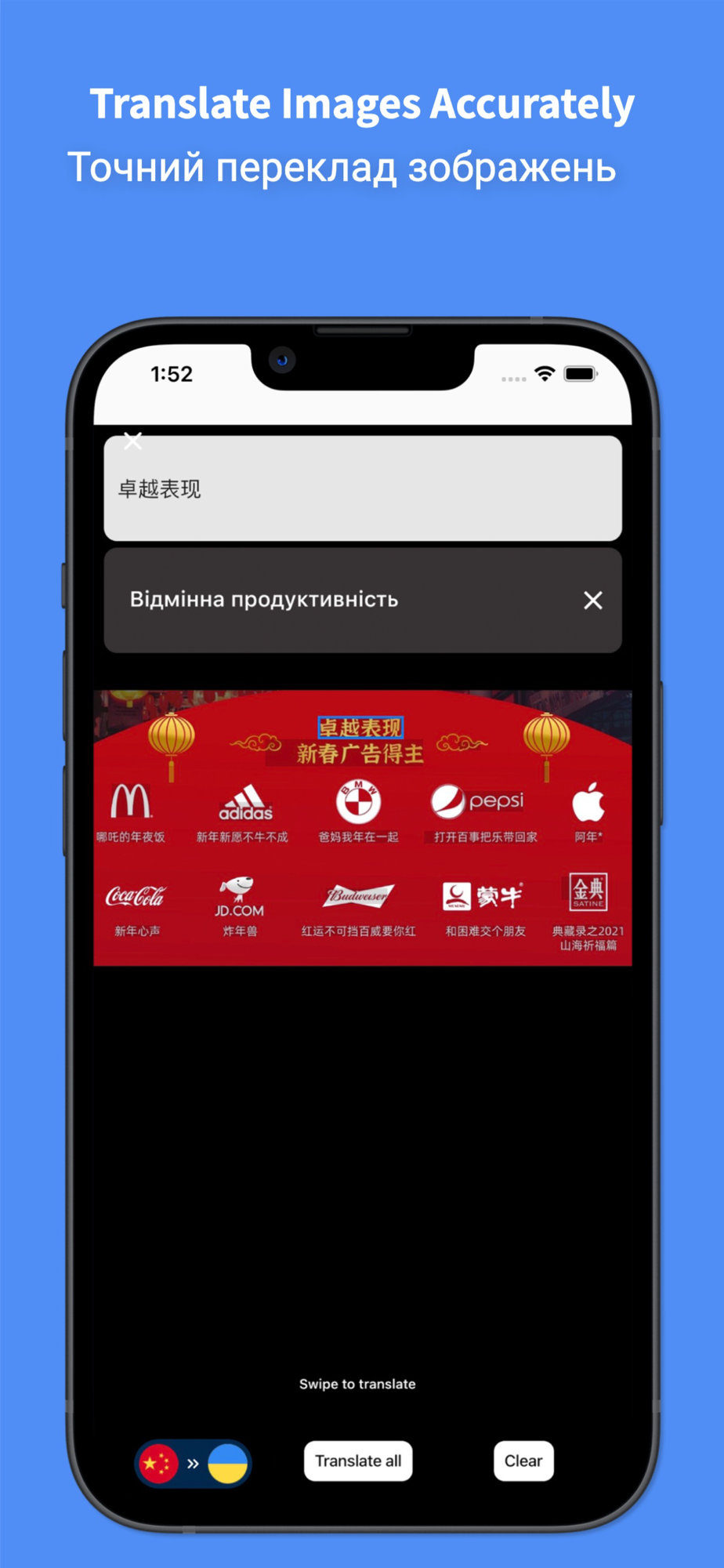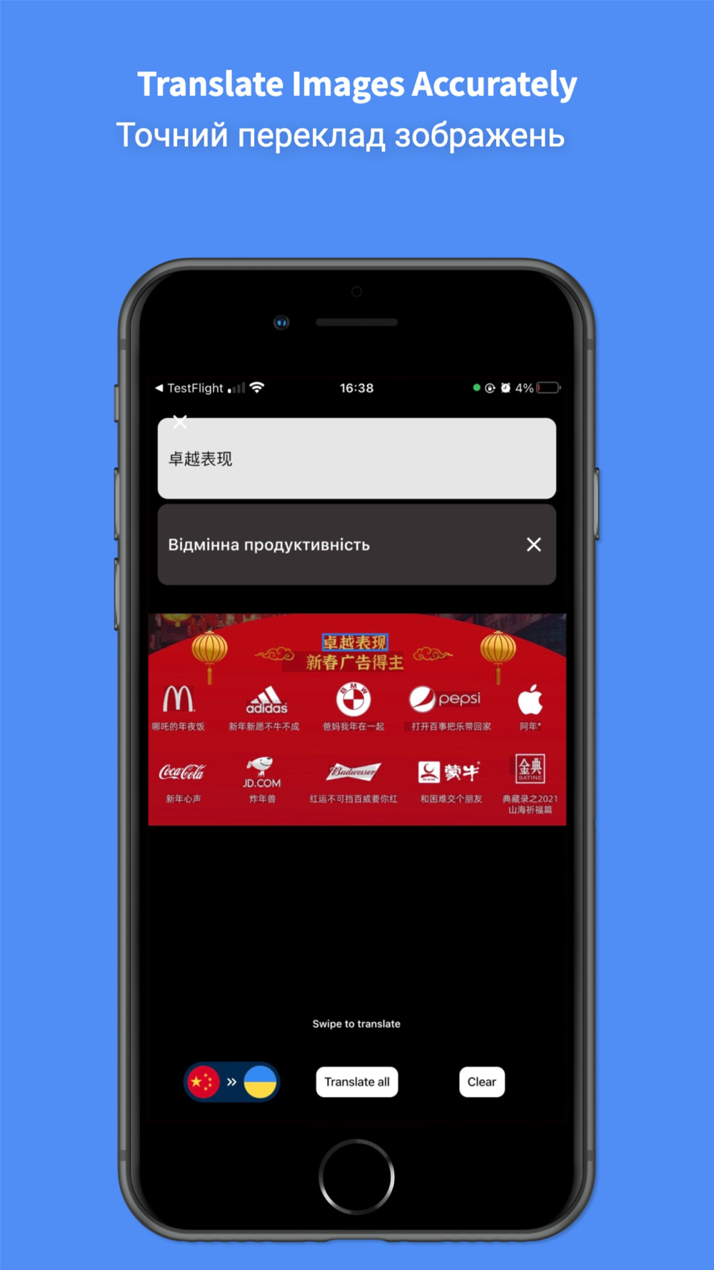 * Camera & Photo Gallery - this translator makes it easy to translate photos into Ukrainian.