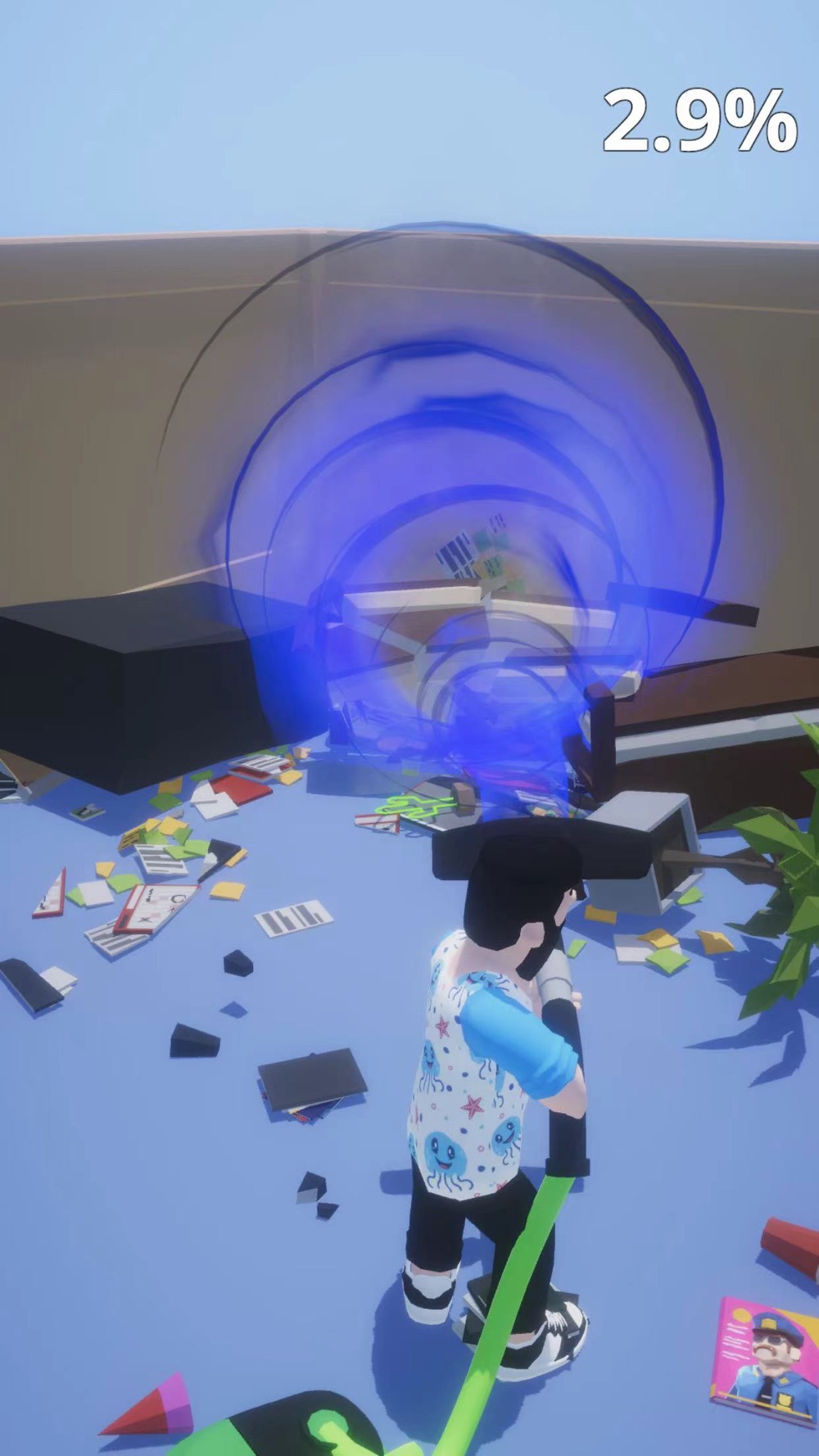 The room is extremely messy. now you can control the high-powered vacuum cleaner in your hand to clean up all the chores in the room.