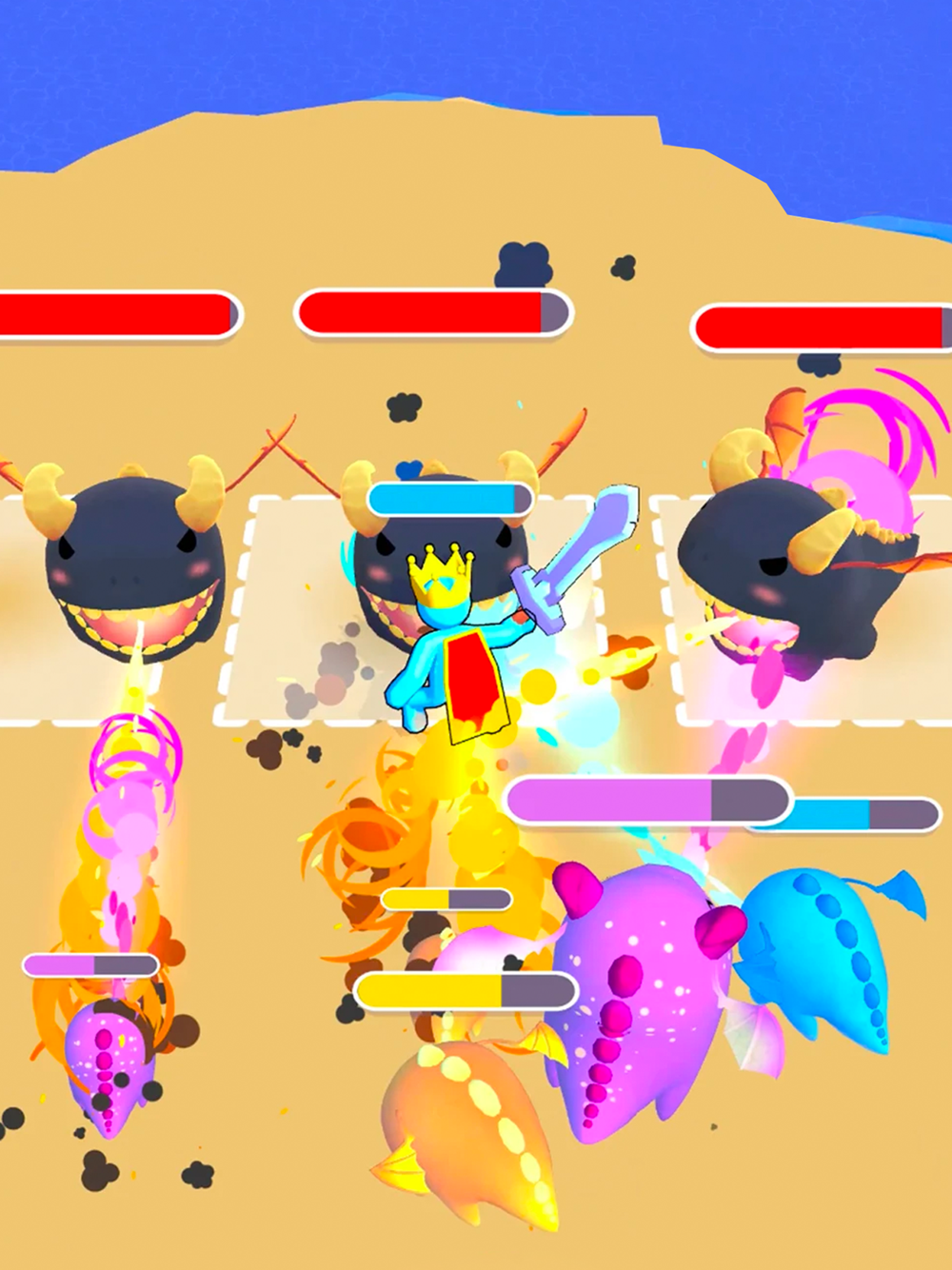 Find dinosaur eggs. The more eggs you find, the more dinosaurs you will get. Watch as funny monsters hatch from eggs and run to attack the enemy!